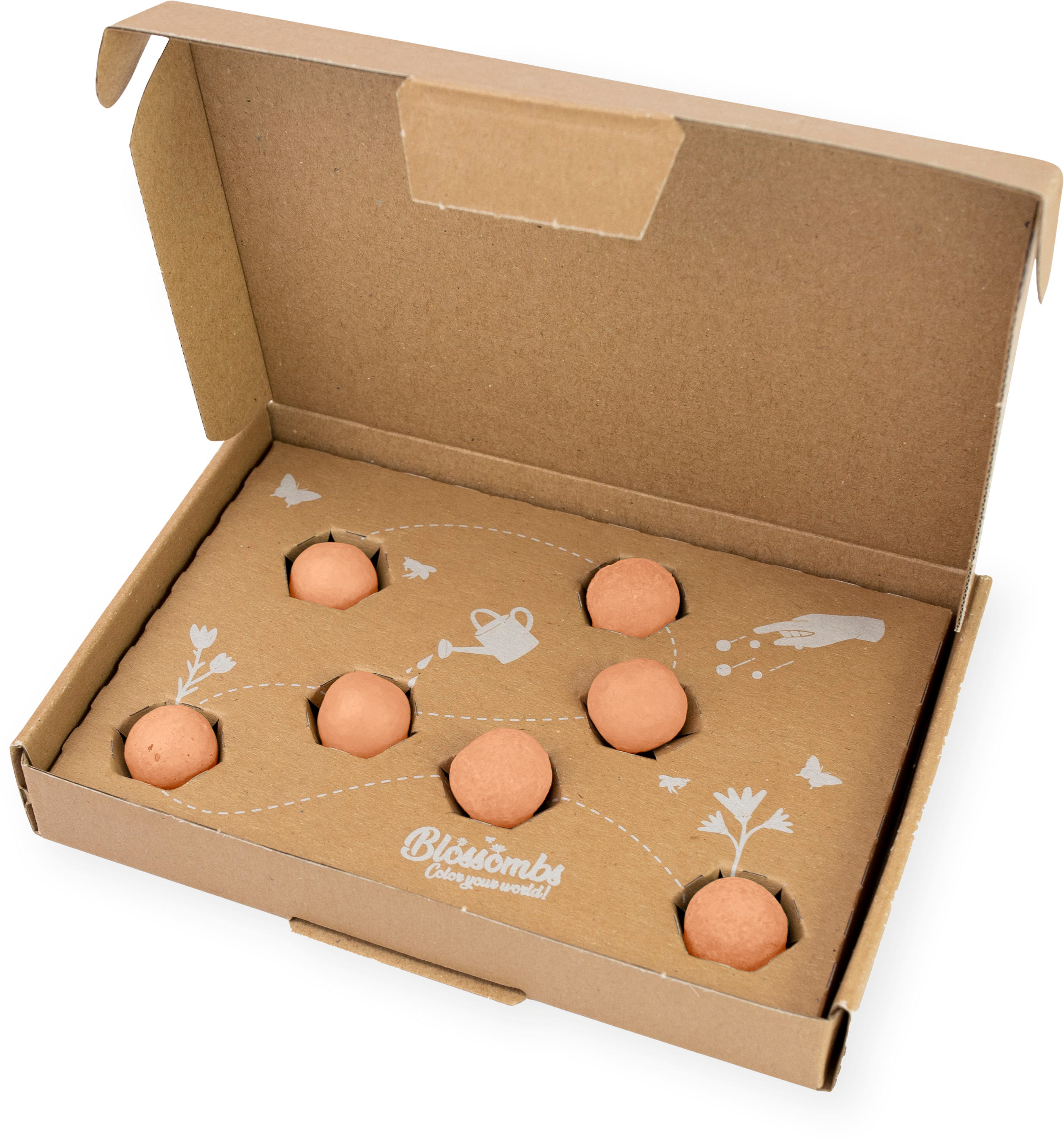 Den här presentförpackningen skapar ett litet blomsterparadis fullt av liv. Fröbomberna låter färgglada vildblommor växa, som lockar till sig framför allt fjärilar och utgör en viktig födokälla för dem. En härlig presentidé för speciella tillfällen eller som en kärleksfull gåva med hållbart mervärde.