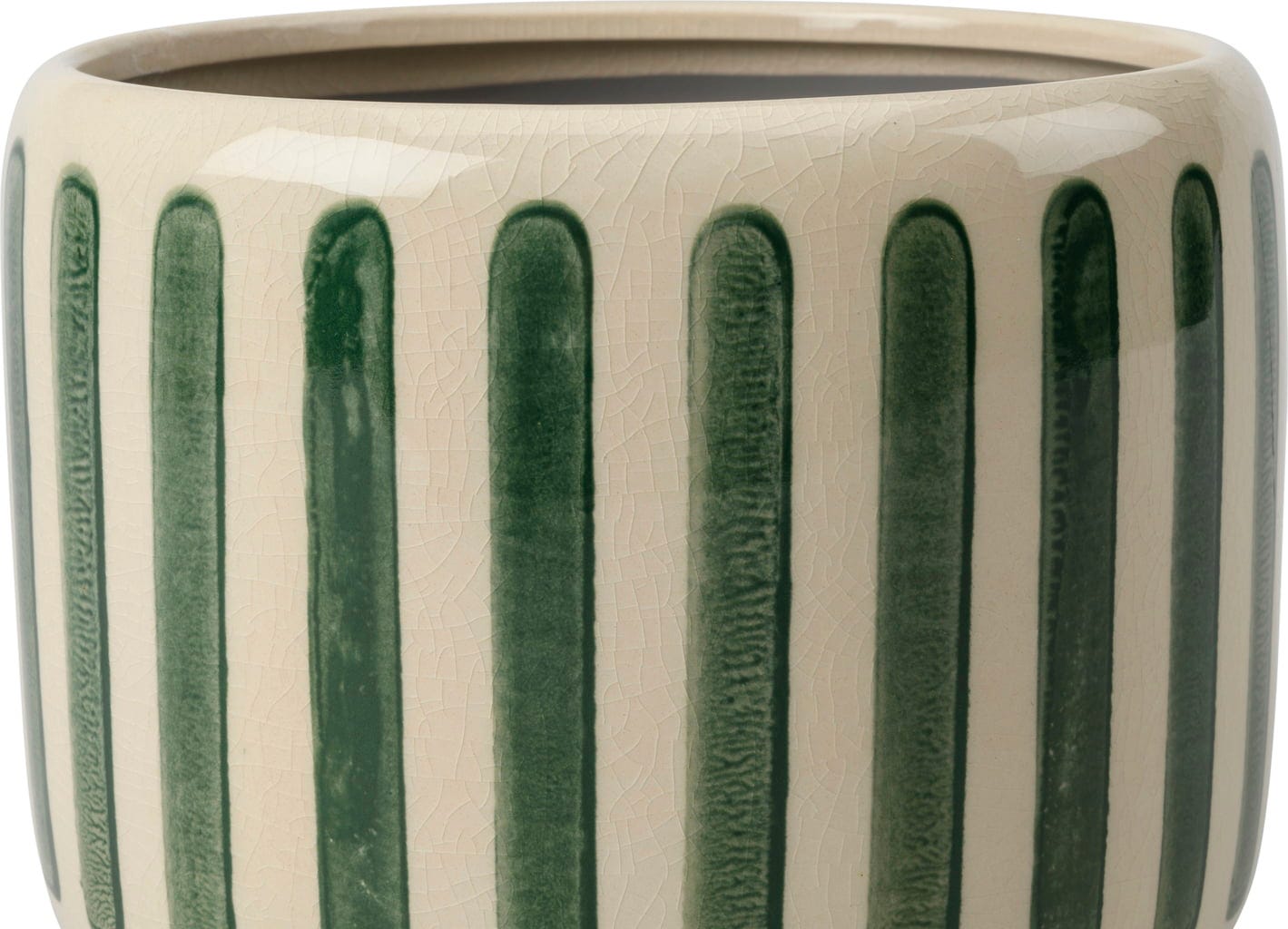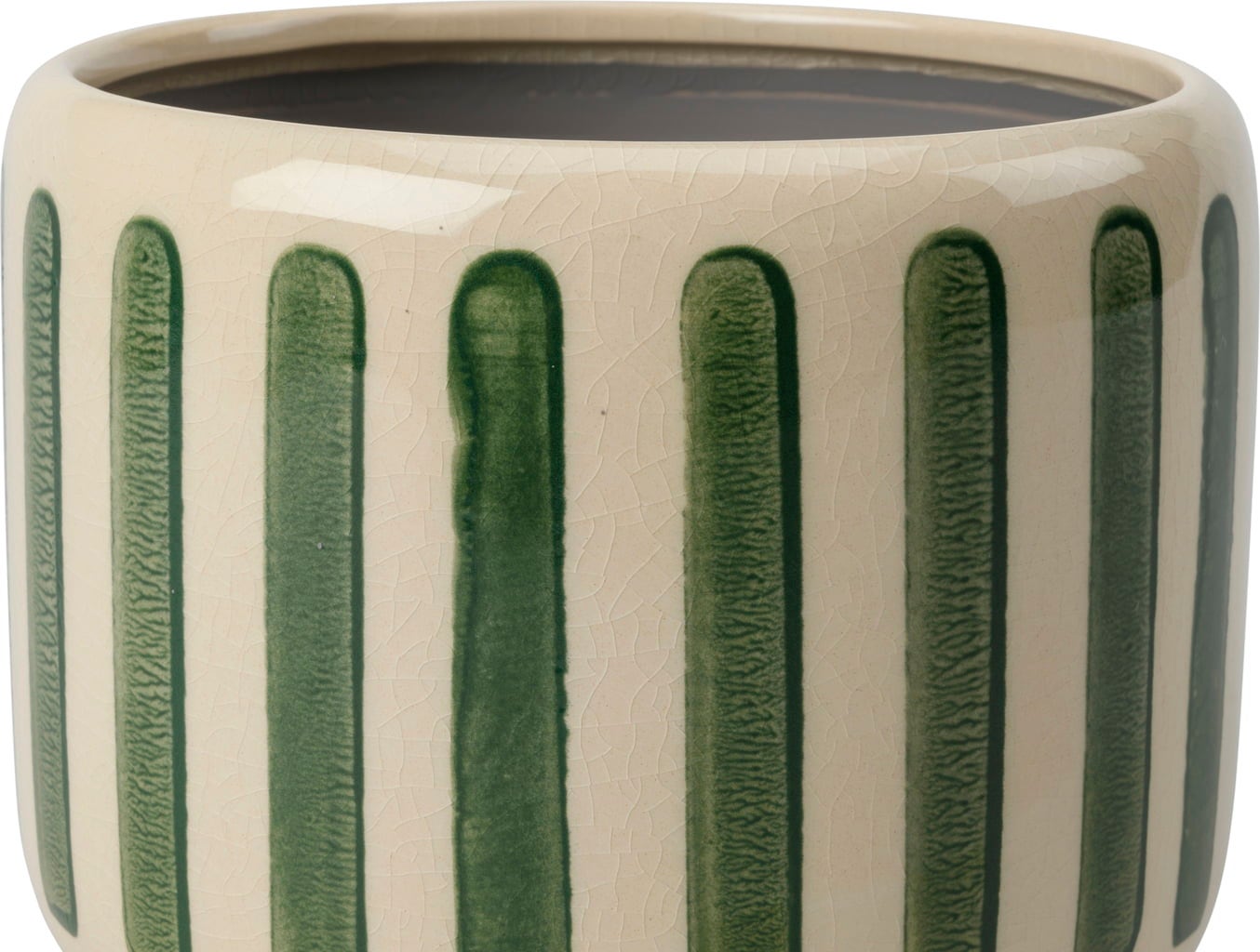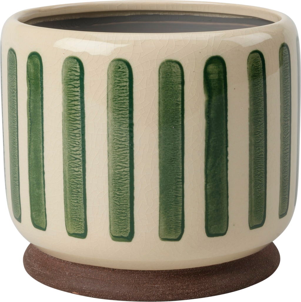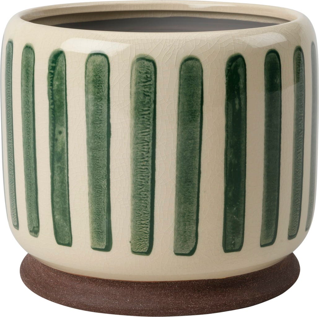 Ge ditt hem en fräsch och modern känsla med den stilfulla krukväxtkrukan "Collector" i stengods. Den fina crackle-glaseringen i kombination med de tydliga ränderna gör krukan till ett riktigt blickfång som tillför både färg och struktur till rummet.