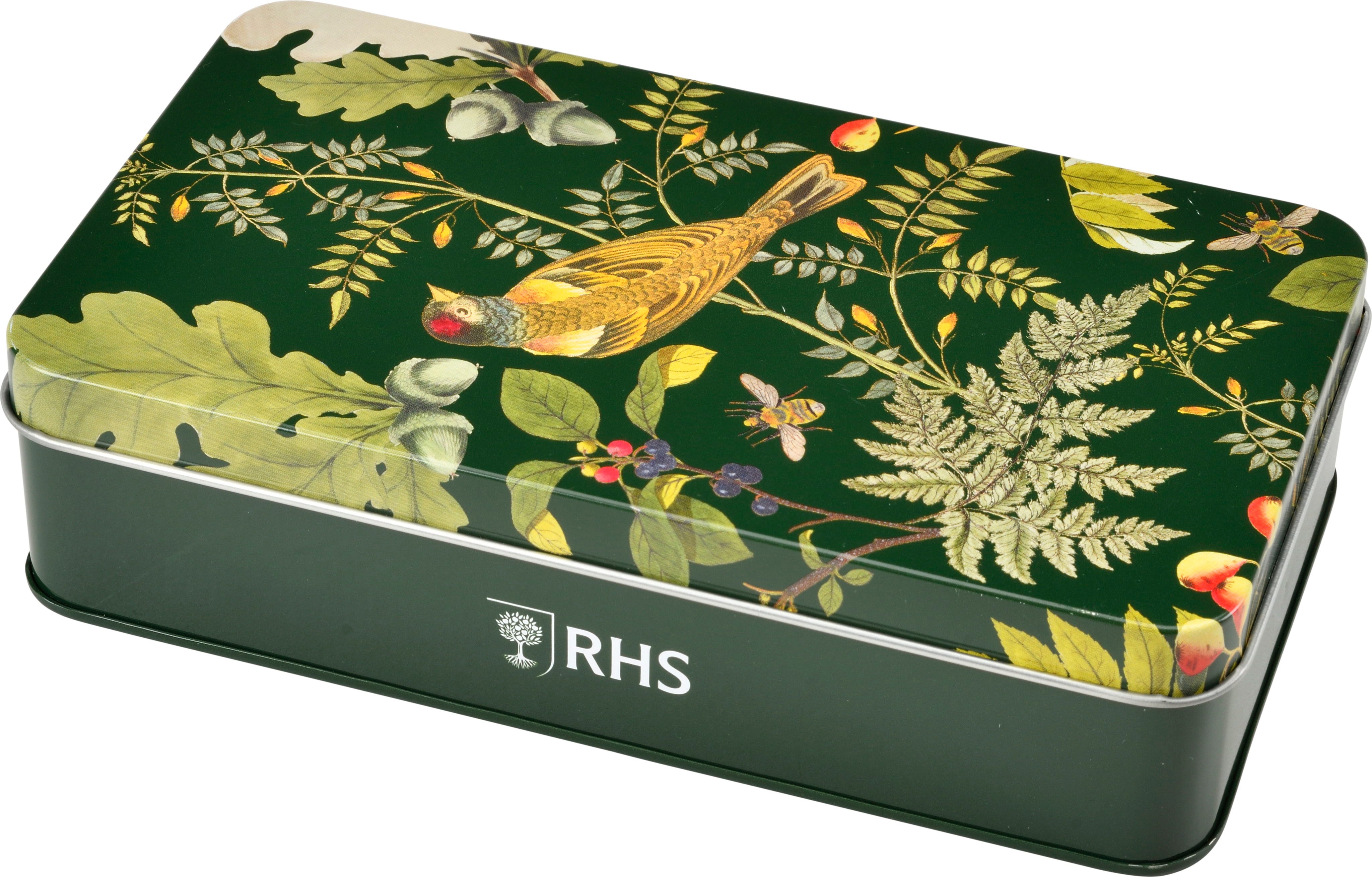 Den eleganta designen ”Woodland Wonders” med historiska motiv från RHS arkiv för in skogens lugn i ditt hem. Som kreativ present eller en exklusiv belöning till dig själv - med detta set kombinerar du praktiska verktyg med nostalgisk botanisk konst.