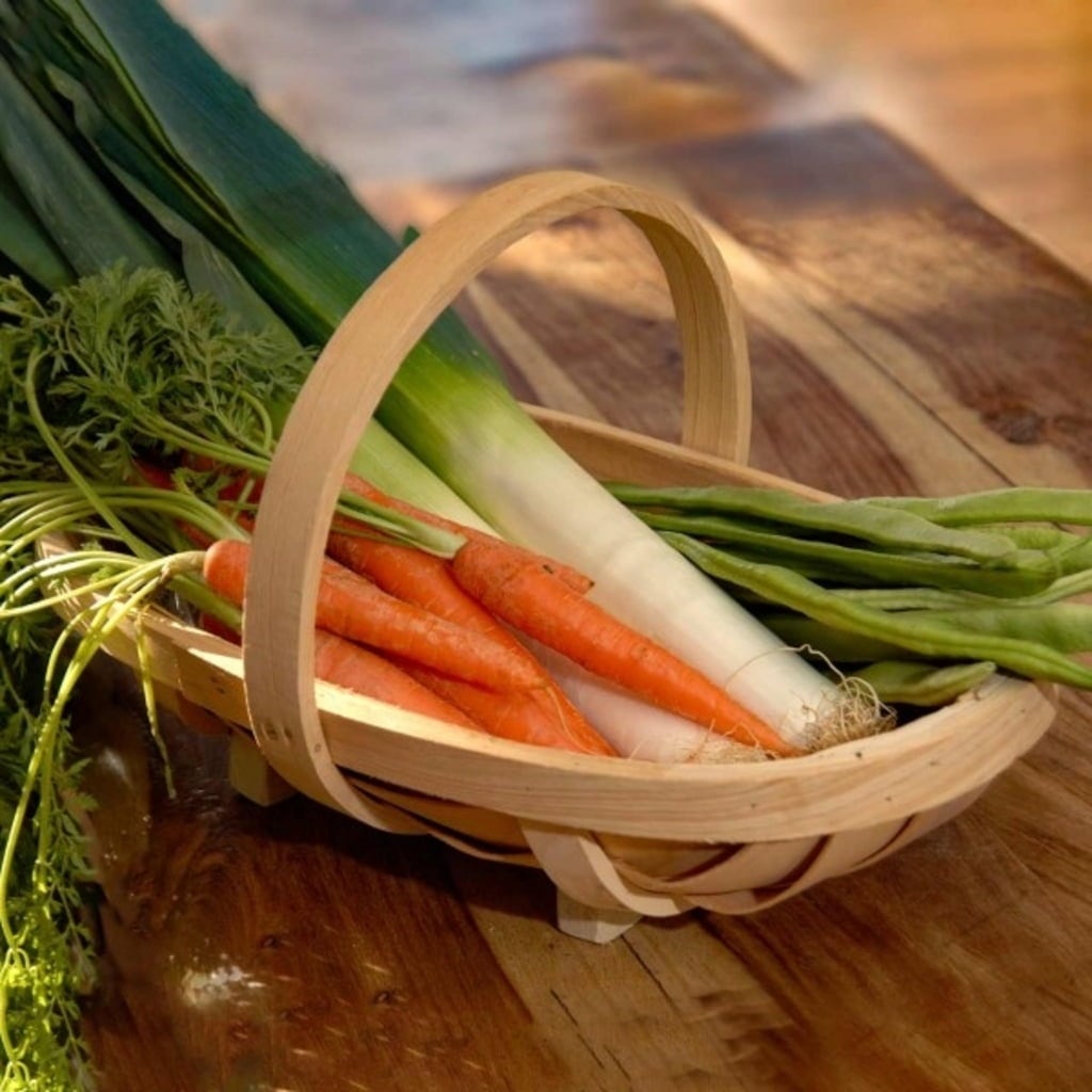 Denna vackra trädgårdskorg är traditionellt handgjord och fungerar utmärkt som skördekorg. Tack vare sin nättare storlek passar den även perfekt som dekorativ bordsdetalj.