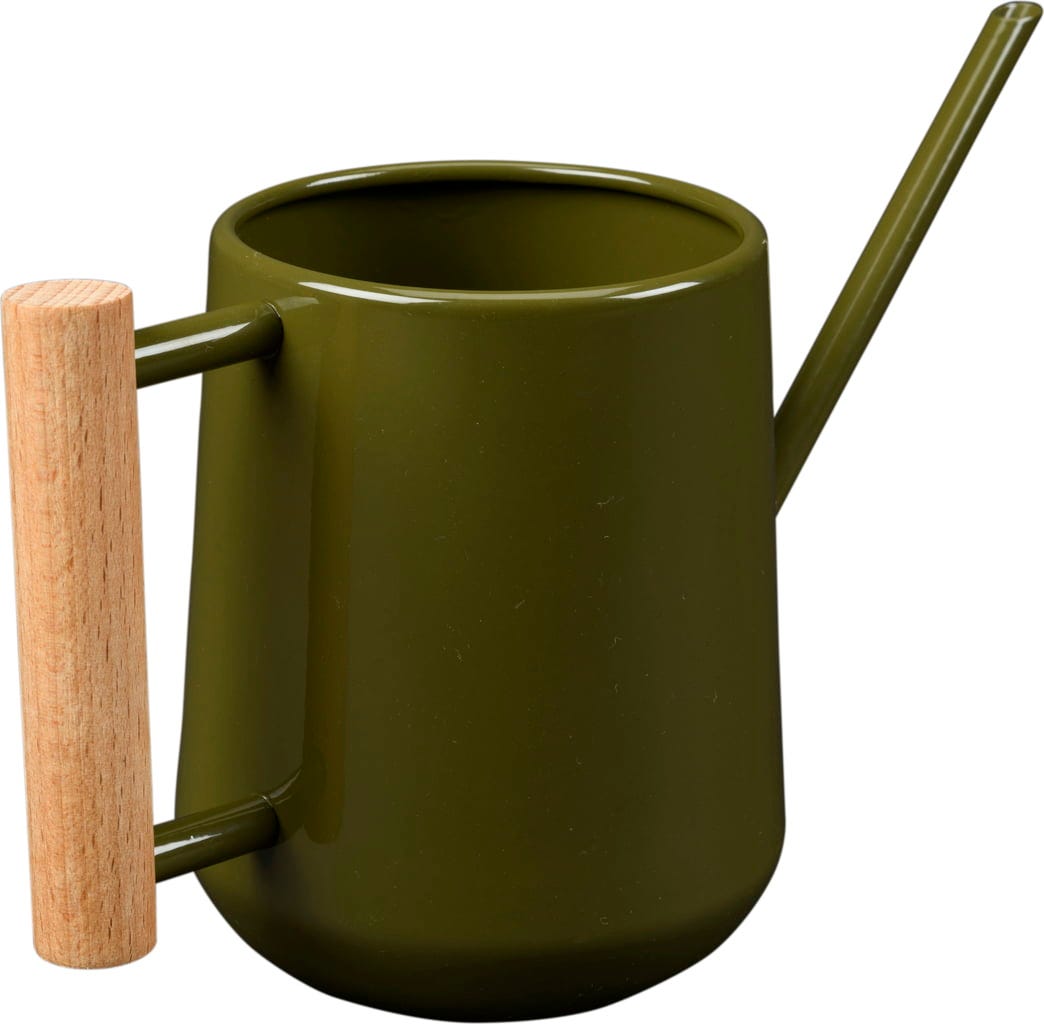 Med denna inomhus-vattenkanna får du både stil och funktionalitet i hemmet. Trähandtaget ger en varm, naturlig känsla, medan det pulverlackerade metallet säkerställer lång hållbarhet. Perfekt för dina krukväxter!