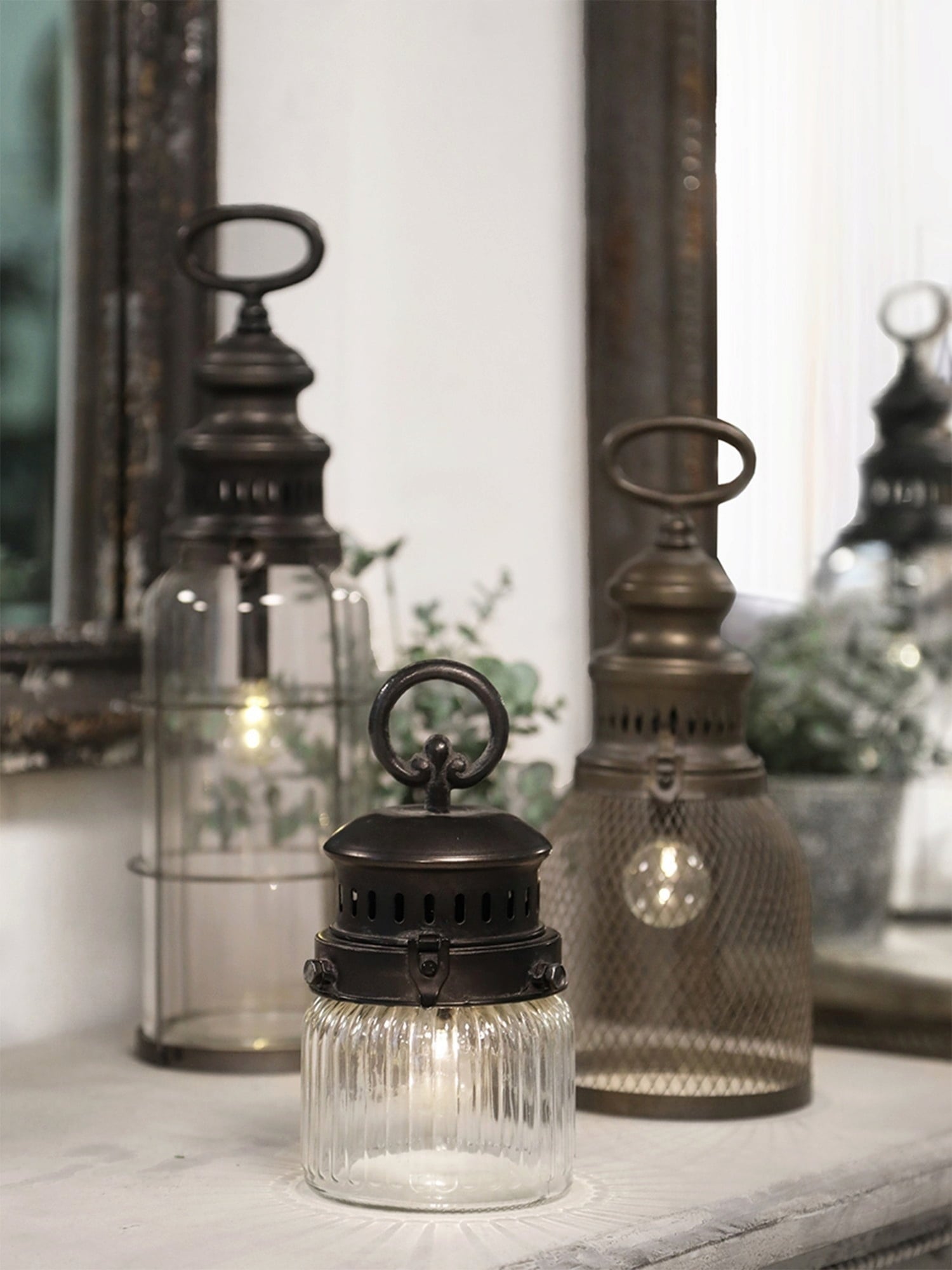 Denna charmiga stalllykta förmedlar känslan av ett franskt lanthem direkt in i ditt hem. Den kan både hängas upp och ställas på en yta, och det strukturerade glaset skapar ett magiskt ljusspel. Med den inbyggda timern styr du enkelt när ljuset ska tändas och släckas – precis som det passar dig.