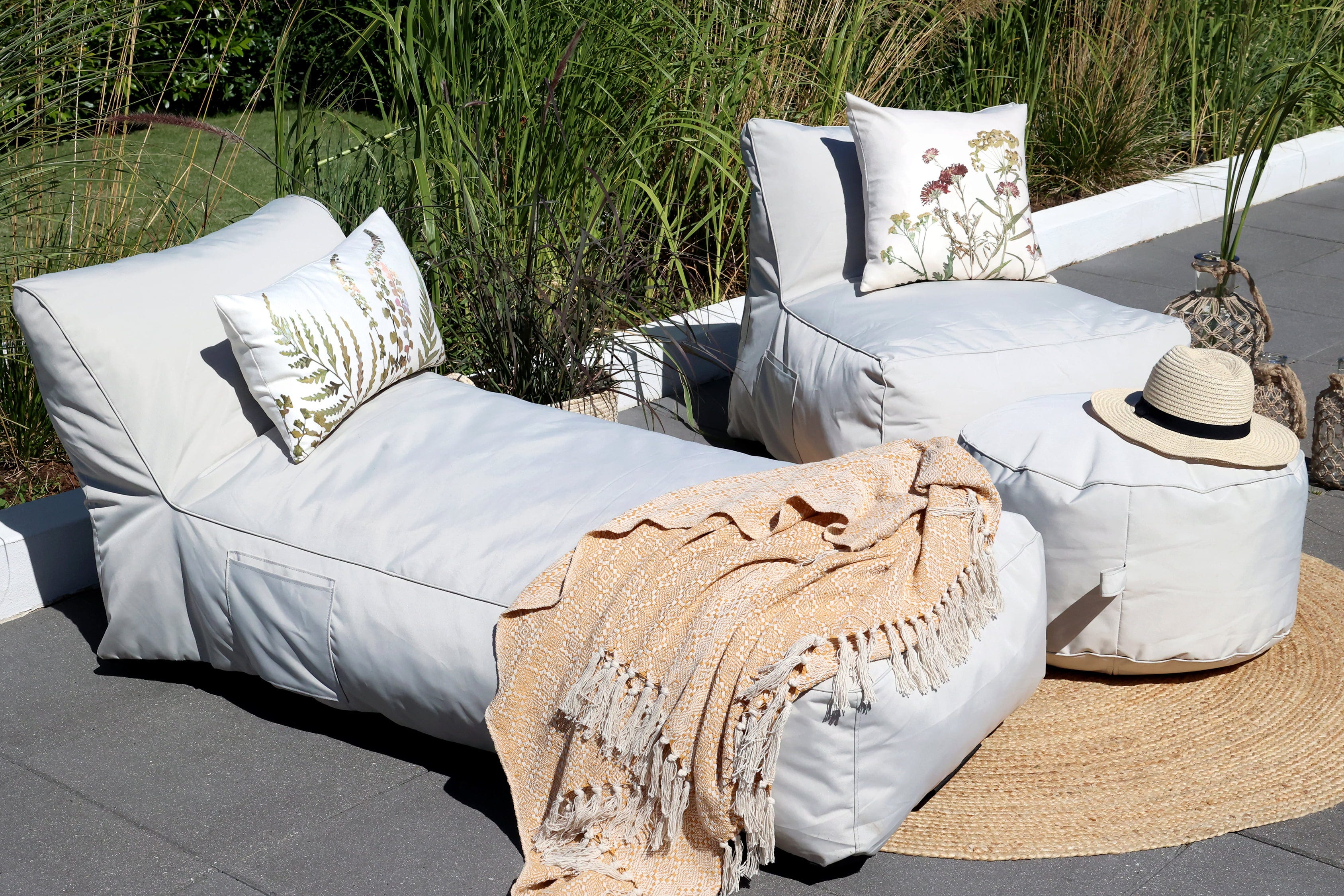 Perfekt för mysiga stunder på balkong, terrass eller i trädgården. Loungepuffen bjuder in till avkoppling, formar sig efter kroppen och ger både komfort och stil utomhus - luta dig tillbaka och njut.