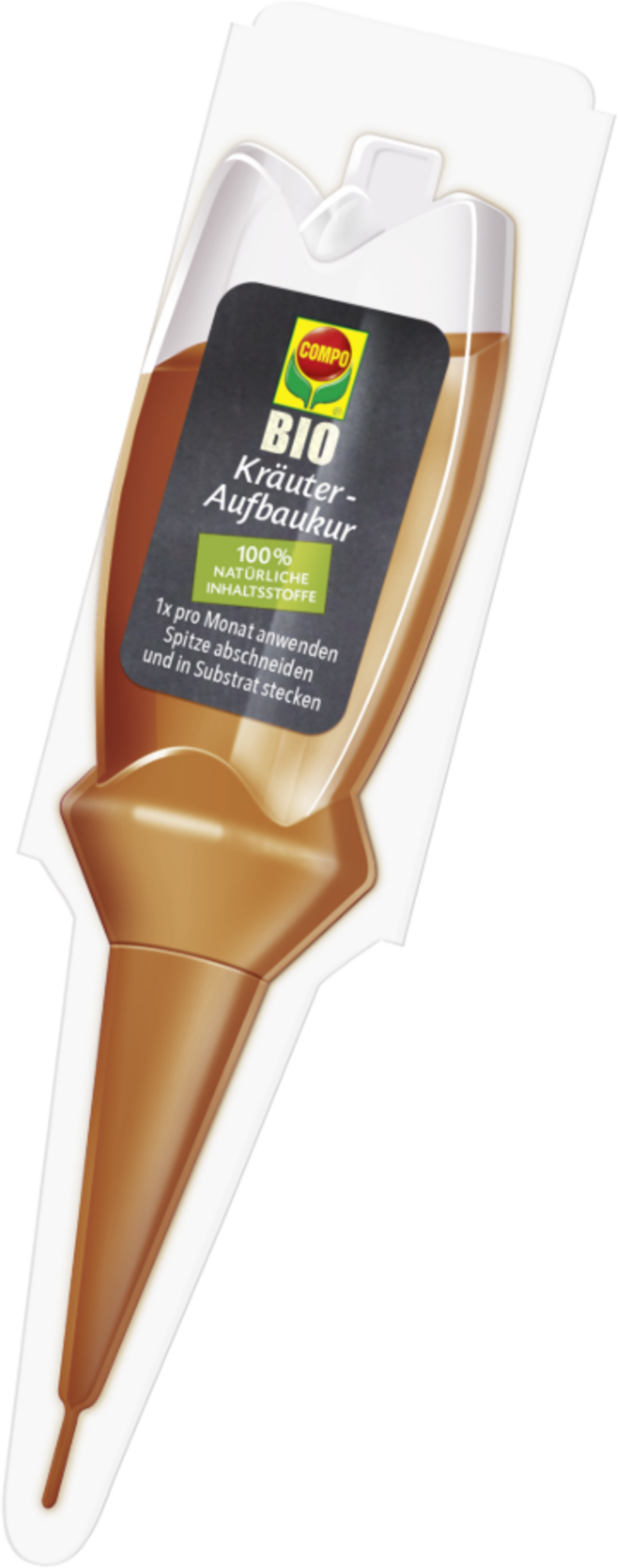 COMPO BIO Ört Uppbyggnadskur ger kraftiga och aromatiska örter och kryddväxter som basilika och rosmarin. De naturliga ingredienserna tas upp direkt av växterna och förser dem med viktiga näringsämnen i upp till fyra veckor. Den praktiska ampullen möjliggör en enkel och ren applicering utan behov av dosering.