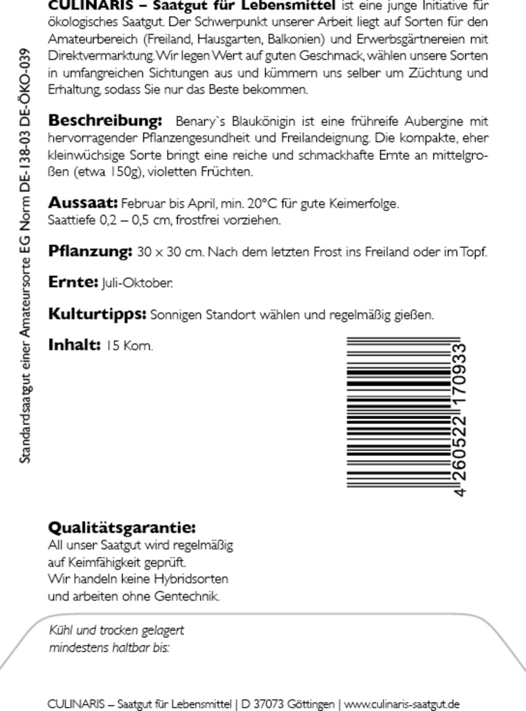 Culinaris Aubergine Benary's Blåkönigin, Eko