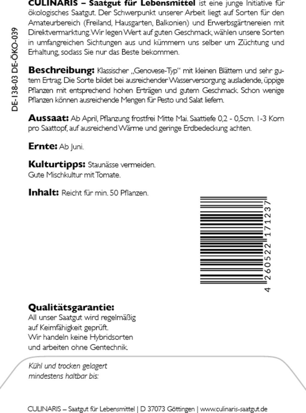 | Tillverkare: | Culinaris - Saatgut für Lebensmittel, Thiegasse 5, 37124, Rosdorf, Tyskland, info@culinaris-saatgut.de, culinaris-saatgut.de |