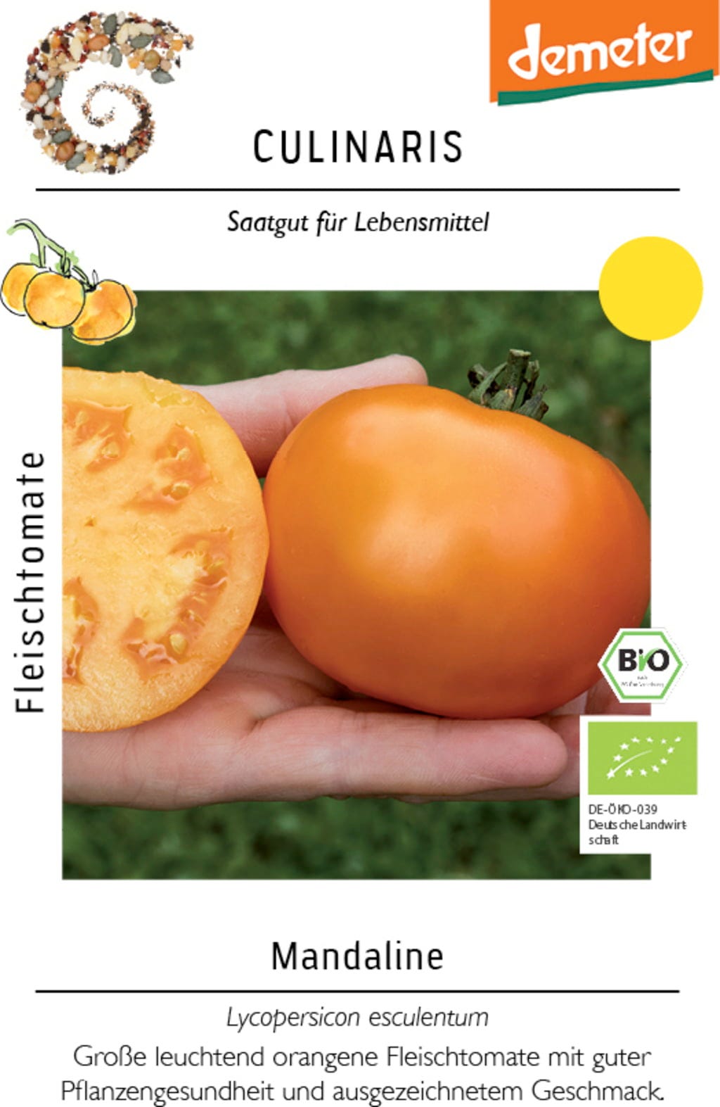 Mandaline imponerar med sina lysande orange frukter och sitt exotiskt fruktiga arom. Tomaterna är stora, saftiga och milt söta i smaken. Plantan är frisk och kompakt - perfekt för både rabatt och kruka. Från juli ger den pålitligt riklig skörd.