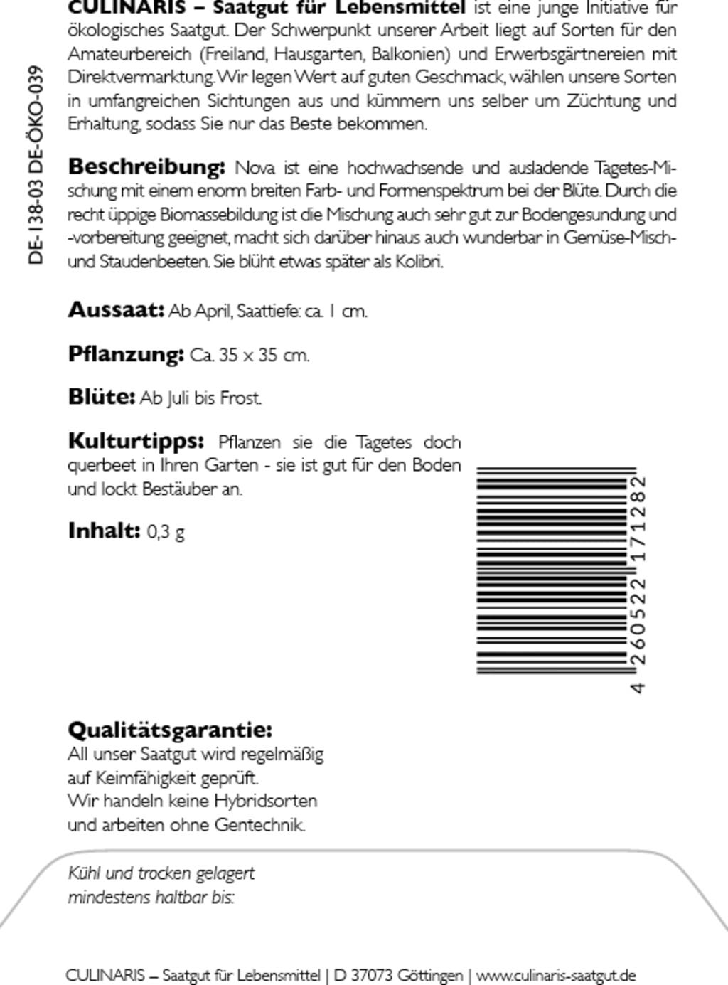 Culinaris Flerfärgad tagetes Nova, Eko