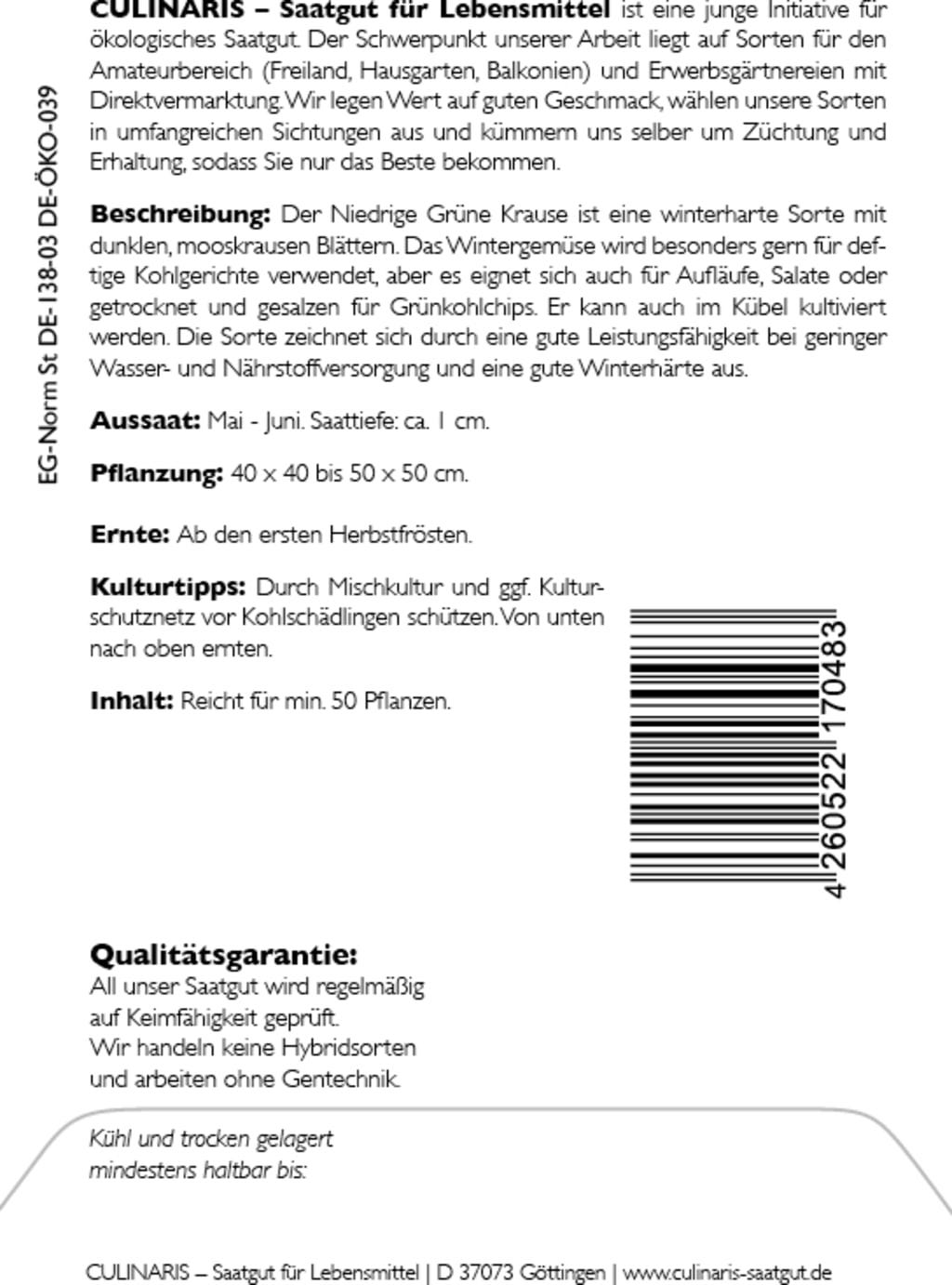 | Tillverkare: | Culinaris - Saatgut für Lebensmittel, Thiegasse 5, 37124, Rosdorf, Tyskland, info@culinaris-saatgut.de, culinaris-saatgut.de |