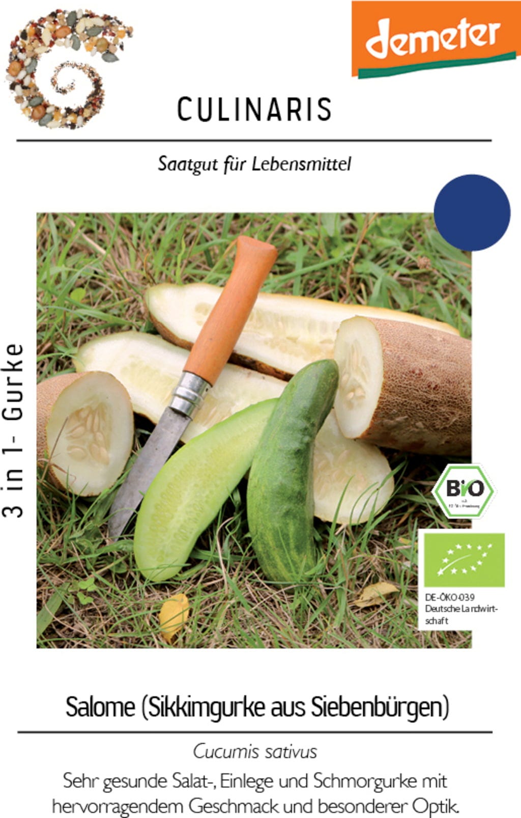 Gurkan "Salome" är en aromatisk och mångsidig sikkimgurka som ger färska, krispiga frukter under flera månader. Även fullt mogna frukter förblir milda och saftiga, perfekta för sallader, smoothies eller bräserade gurkrätter. Tack vare sitt fria växtsätt och enkla skötsel passar den särskilt bra för hemträdgården.