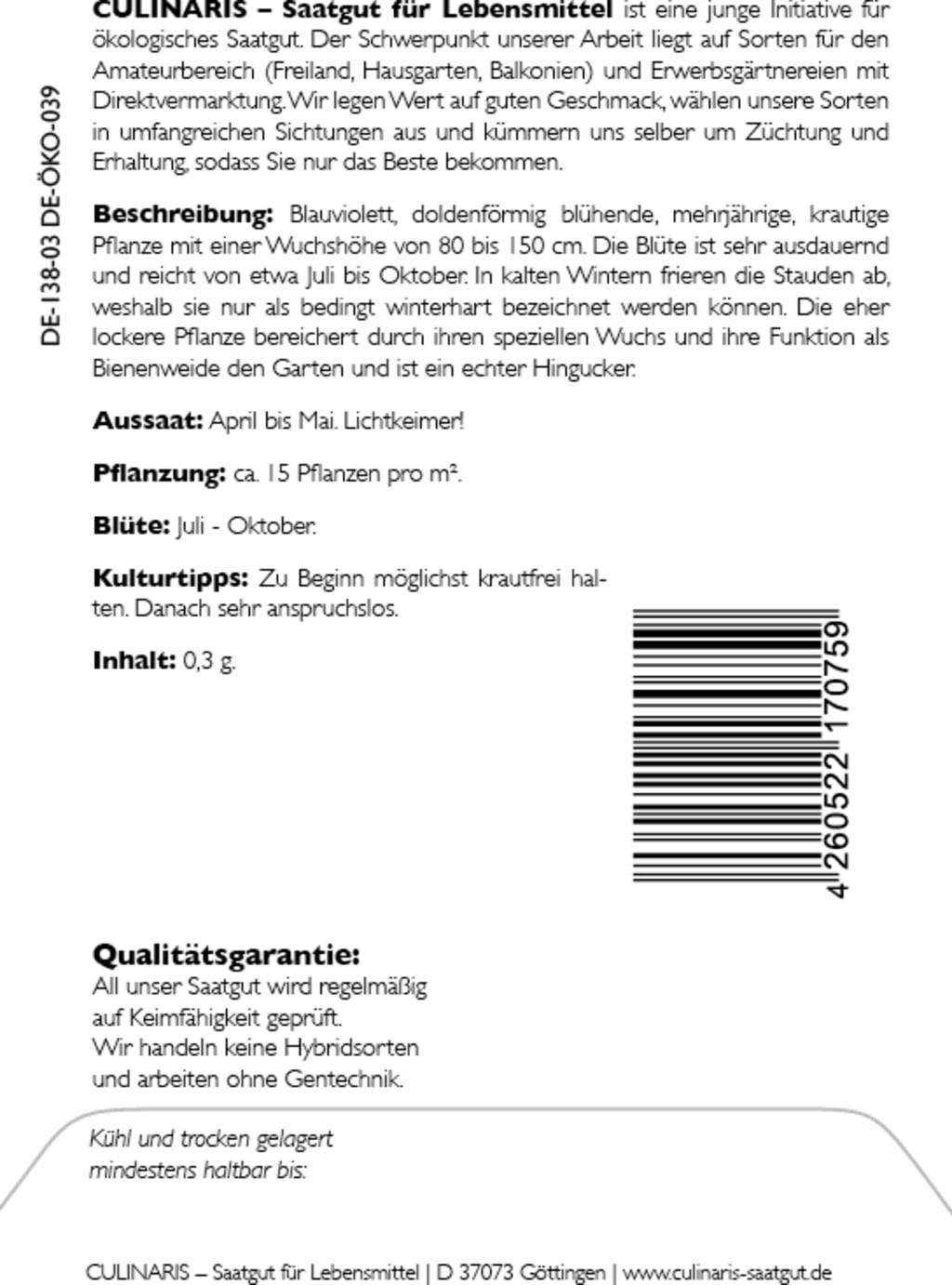 | Tillverkare: | Culinaris - Saatgut für Lebensmittel, Thiegasse 5, 37124, Rosdorf, Tyskland, info@culinaris-saatgut.de, culinaris-saatgut.de |