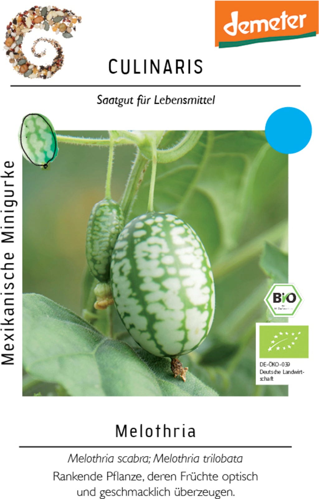 Den mexikanska minigurkan är en klättrande, dekorativ och samtidigt välsmakande växt för trädgård, balkong eller kruka. De små, ovala frukterna har en friskt citronlik smak och passar bra i sallader eller som snacks direkt från plantan. Med klätterstöd växer plantan kraftigt och ger riklig skörd från juli till september.