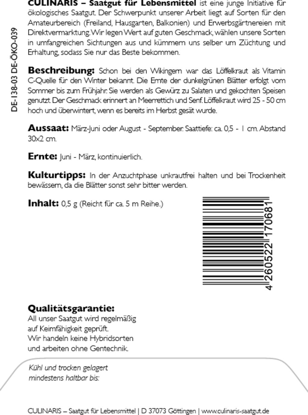 | Tillverkare: | Culinaris - Saatgut für Lebensmittel, Thiegasse 5, 37124, Rosdorf, Tyskland, info@culinaris-saatgut.de, culinaris-saatgut.de |