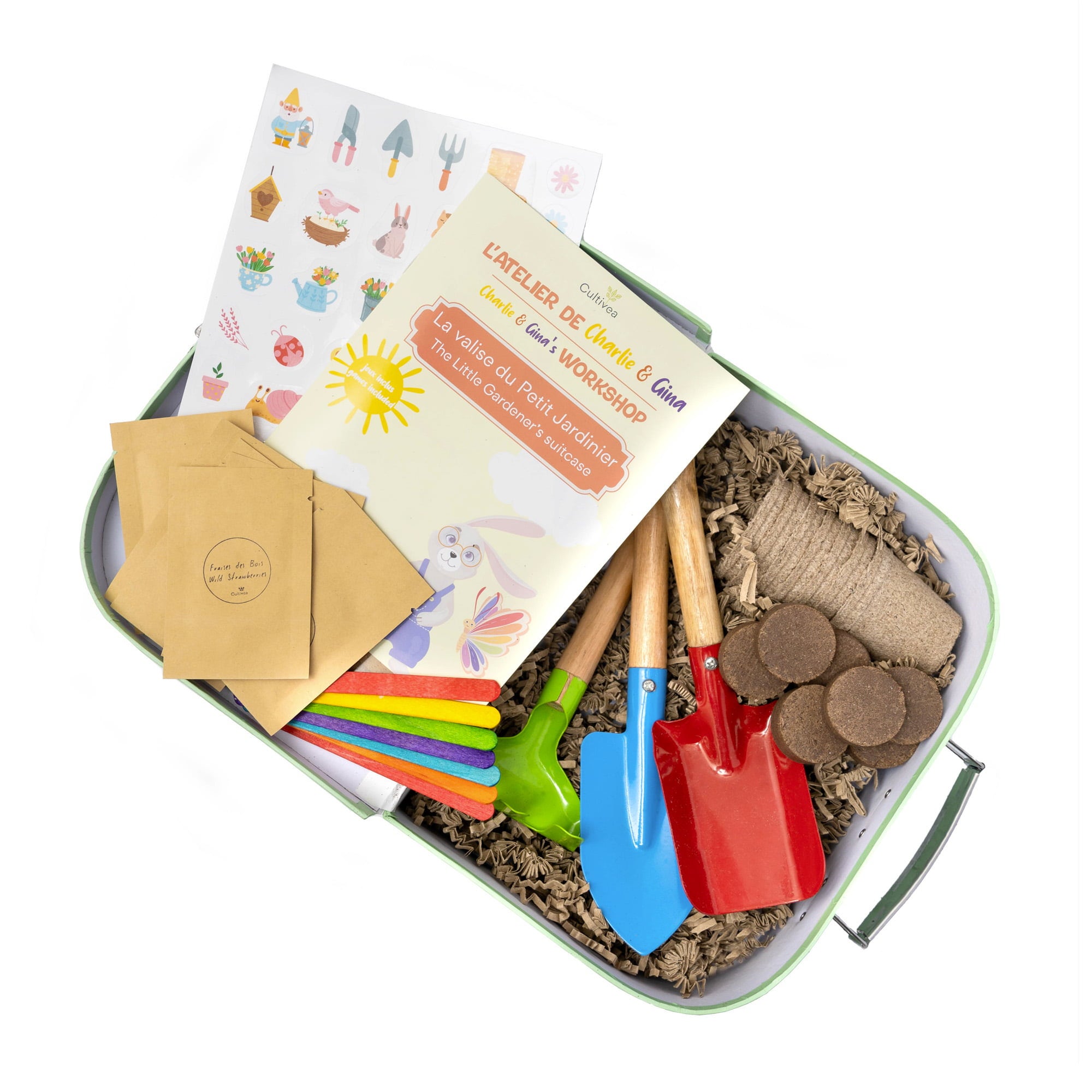 I denna färgglada väska finns allt små trädgårdsmästare behöver för att odla krispiga grönsaker och läckra frukter. De lekfullt designade trädgårdsredskapen inspirerar till att testa olika aktiviteter i trädgården och tillsammans med det ekologiska fröutbudet väcks nyfikenheten för odling – samtidigt som barnen får ett ökat medvetande om vår miljö.