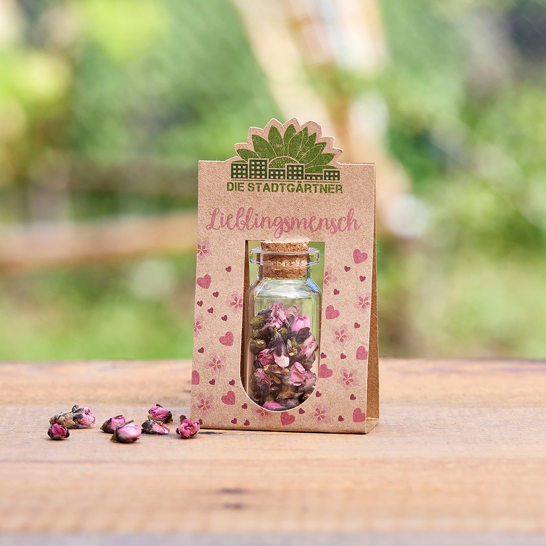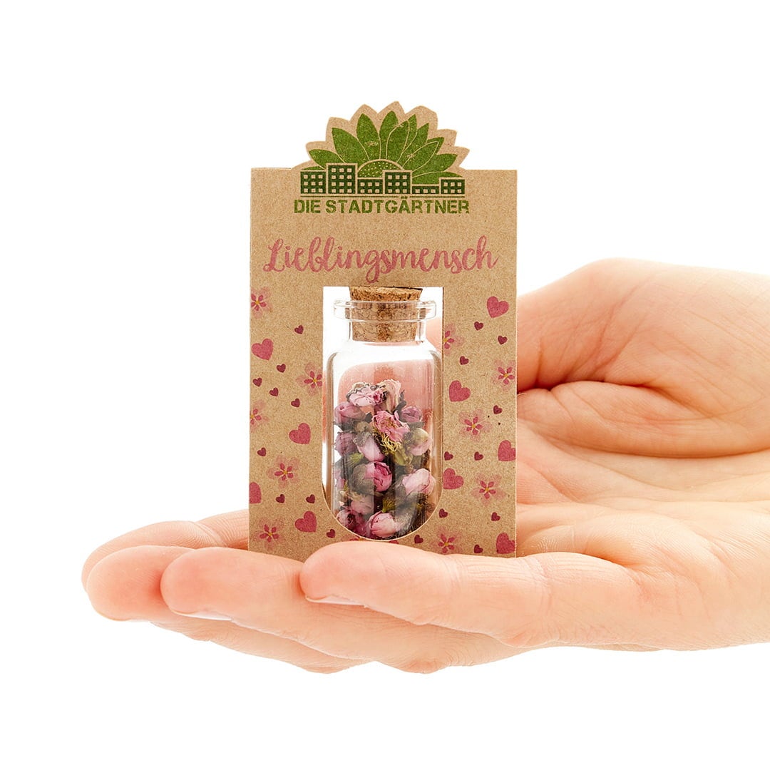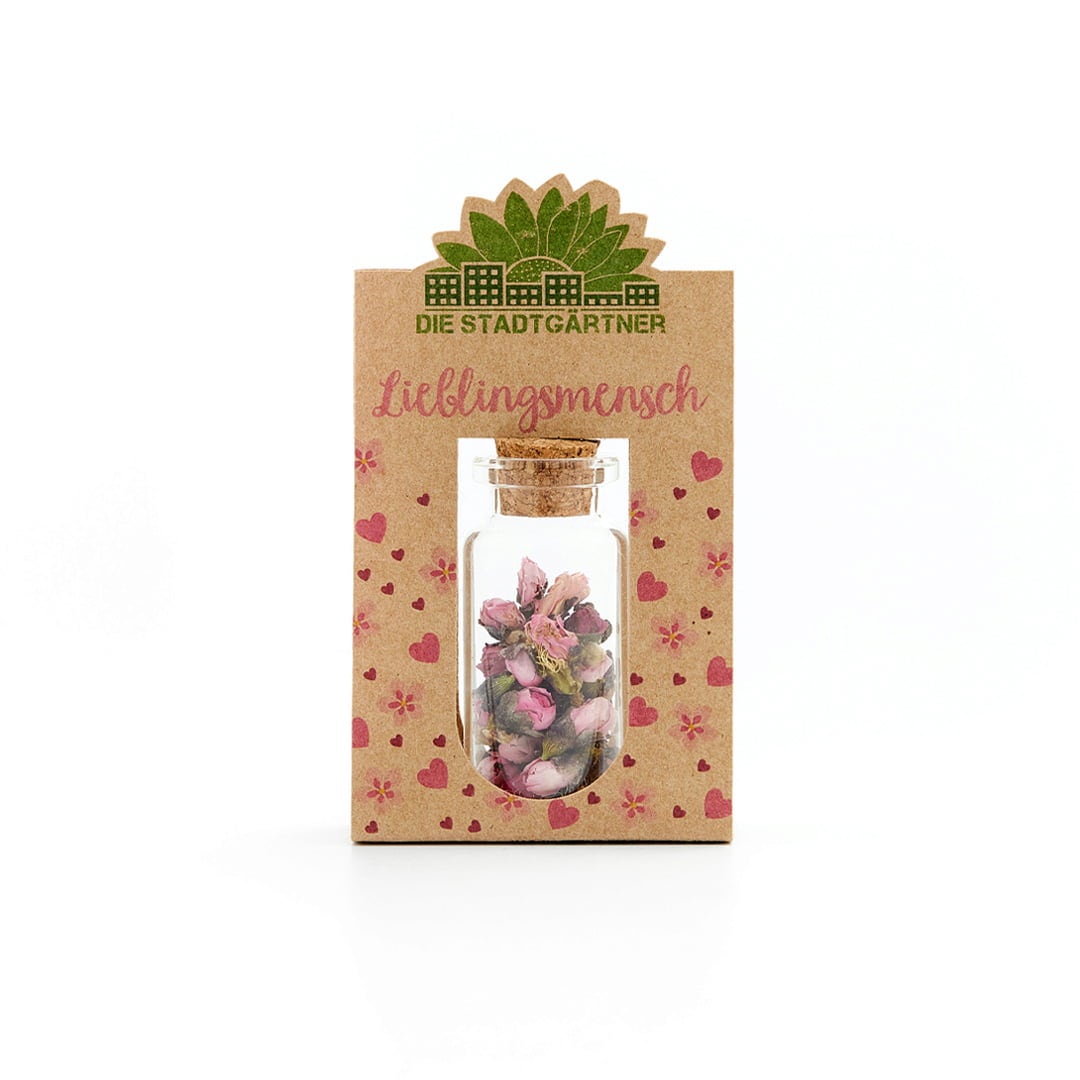 Det måste inte alltid vara en bukett! Den här lilla glasburken är fylld med magiska, handplockade och omsorgsfullt utvalda torkade blommor. En perfekt gåva till någon riktigt speciell – som kommer att glädja länge och förmedla känslor på ett charmigt och unikt sätt.