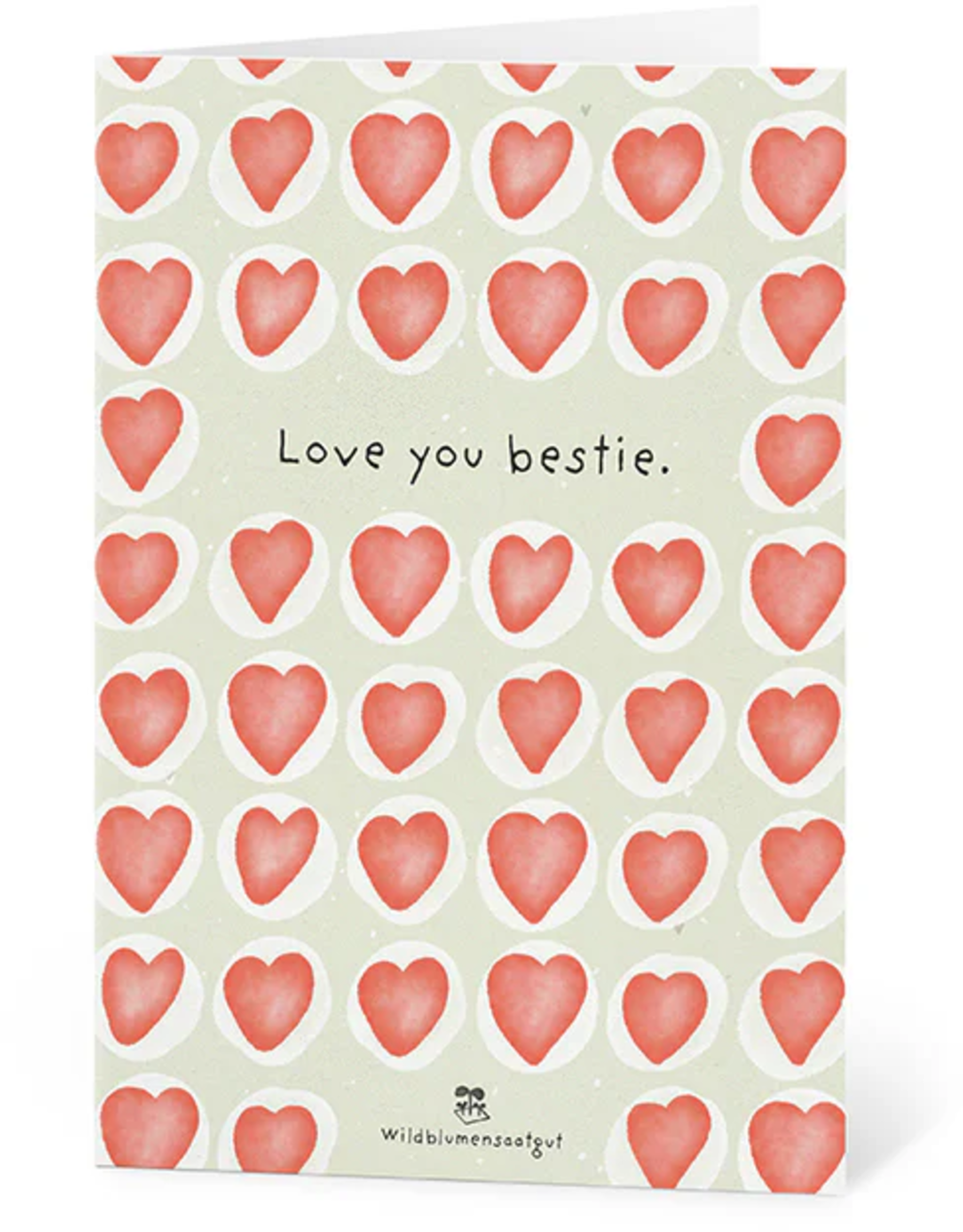 Love you, bestie! Det här kortet säger det som så ofta glöms bort: Du betyder massor för mig. Till den som alltid lyssnar, skrattar med och känner in – en liten hälsning fylld av tacksamhet och kärlek. Perfekt till födelsedag, vänskapsdag eller bara sådär.