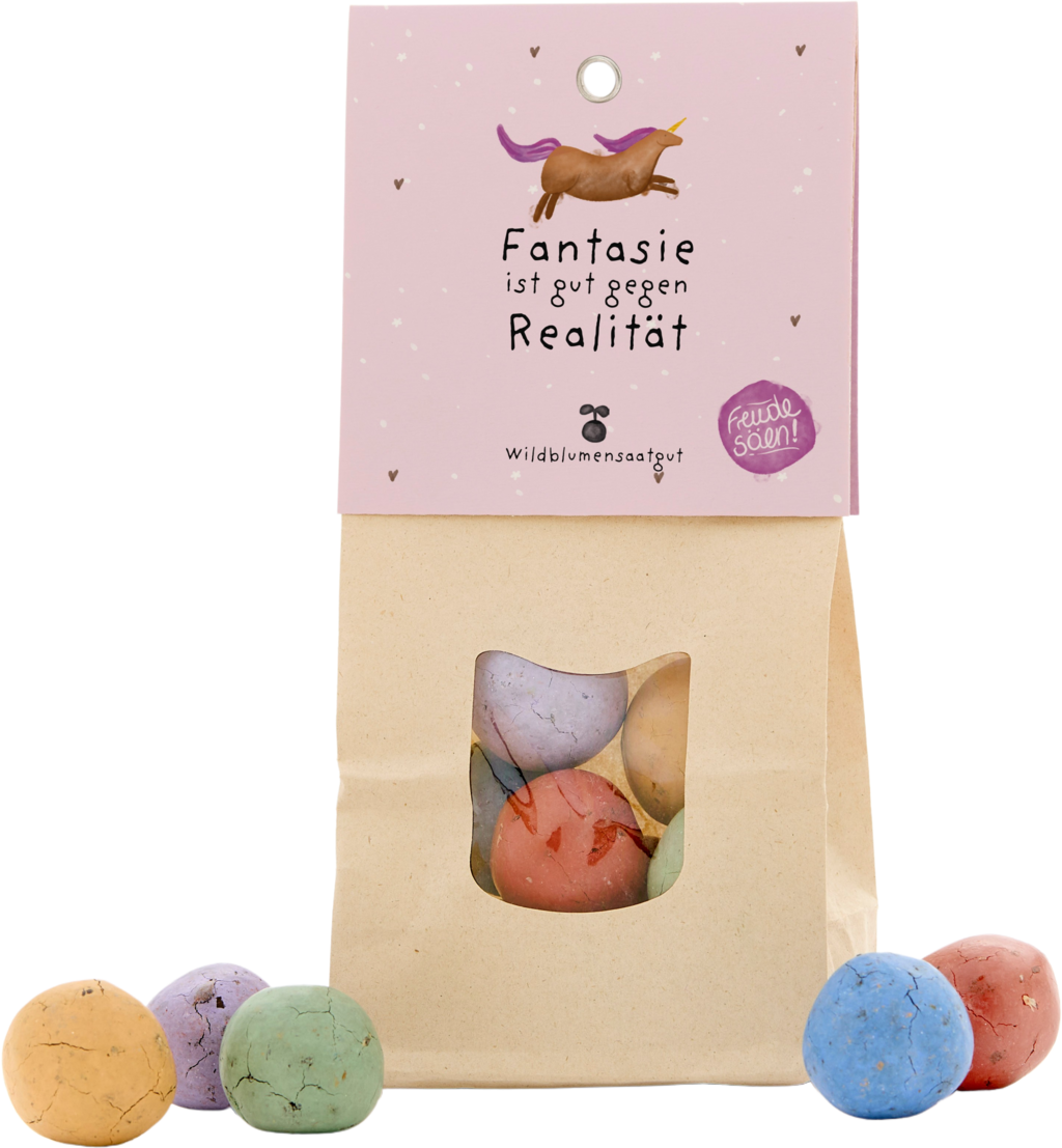 Låt blommorna tala! Den här magiska presentidén med 8 vildblomkulor för in lite förtrollning i vardagen. Förpackade i en fantasifullt designad påse med enhörningsmotiv – mer än bara frön, de sprider färg, glädje och hopp.