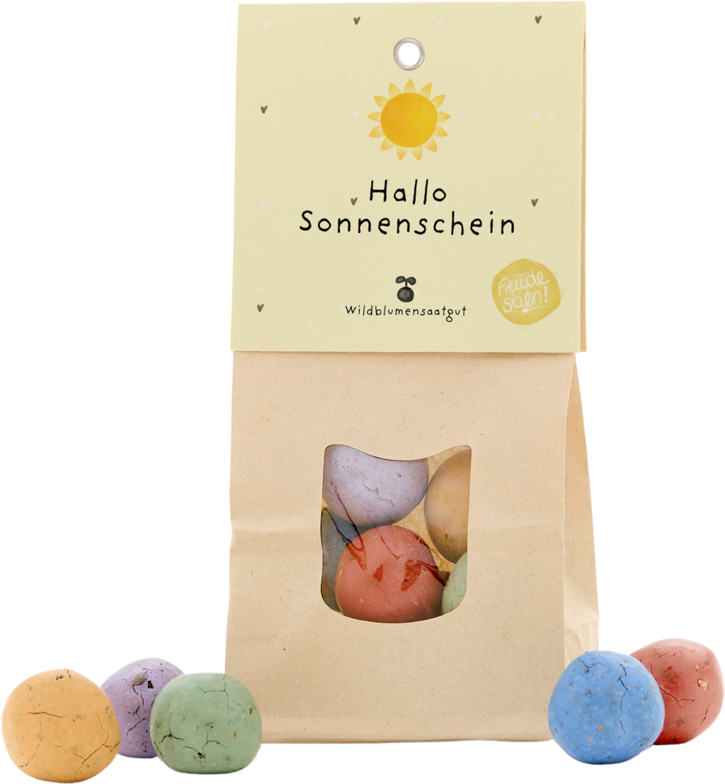 Den här färgglada papperspåsen sprider värme och livsglädje. Åtta frökulor med en färgstark vildblomsblandning skapar ett litet blomsterhav – på balkong, altan eller i trädgården. Bara att sprida, vattna och låta naturen göra jobbet. En omtänksam gåva till väninnor, familj eller kollegor. Den plastfria, hållbara förpackningen gör gåvan både hjärtlig och miljövänlig.