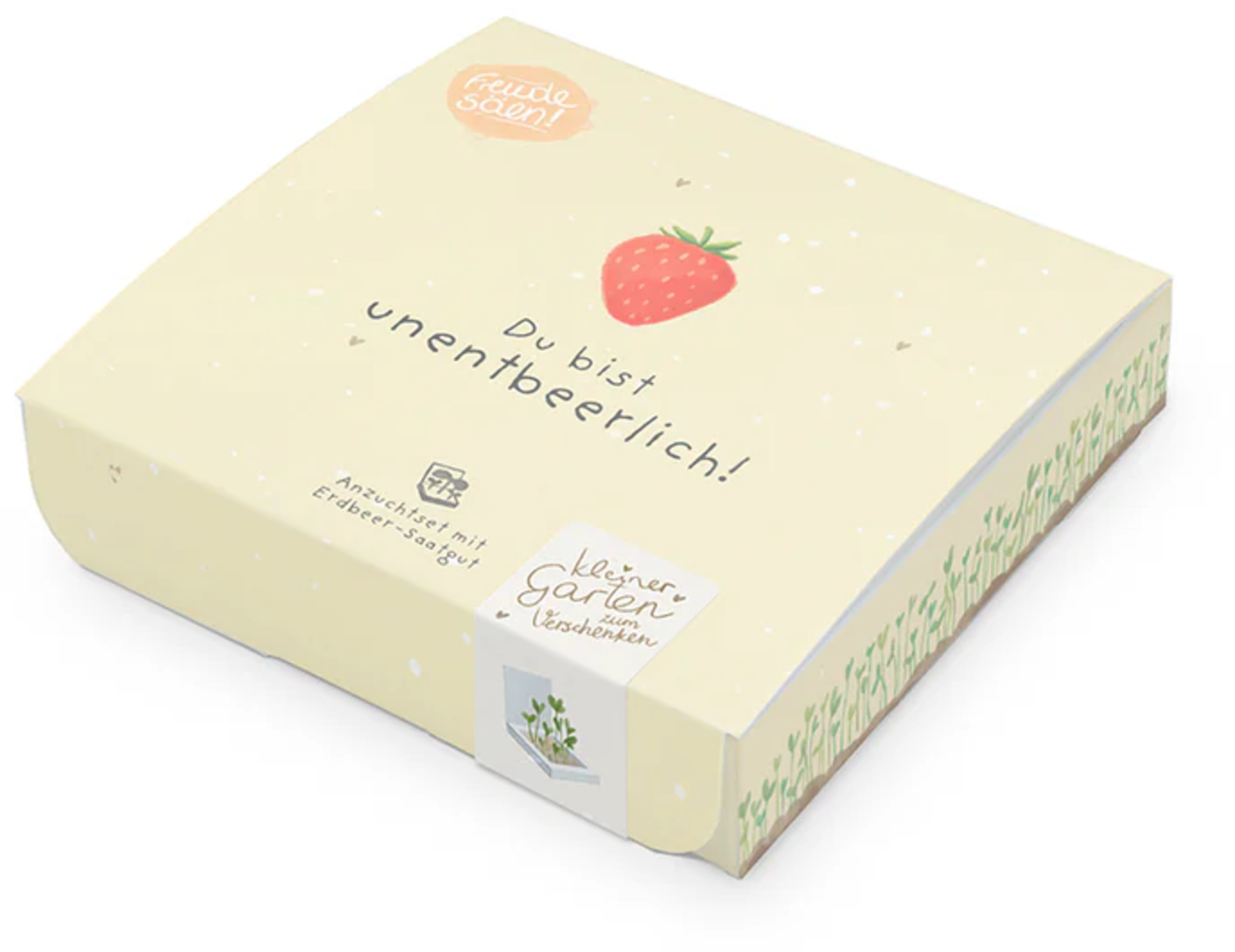 Helt enkelt oumbärlig: Det här kärleksfullt designade planteringskitet säger på charmigt sätt: Du är viktig – och jag kan inte tänka mig livet utan dig. Perfekt för favoritpersoner, fina kollegor eller vänner som gör livet lite bättre. Från fröna växer söta jordgubbar – en fruktig symbol för hur fint det är att ha någon vid sin sida.