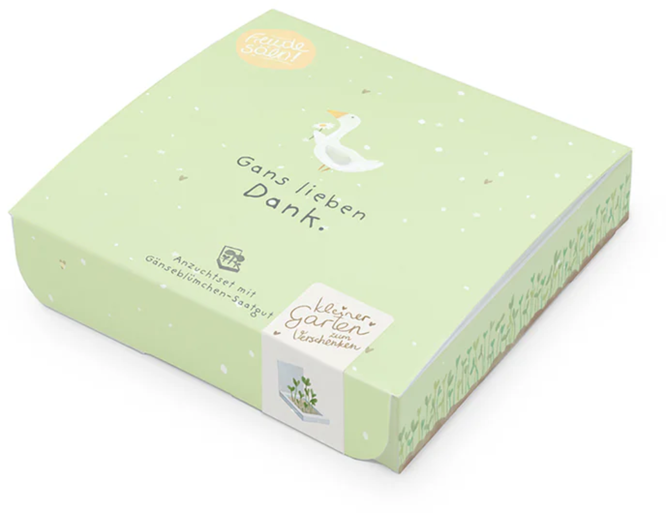 Det här kärleksfullt utformade planteringskitet säger helt enkelt: Vad fint att du finns. För personer som gör skillnad – med små eller stora gester, med stöd, närvaro och värme. Från fröna växer näpna bellisblommor – en blommande symbol för alla små och stora saker vi är tacksamma för.