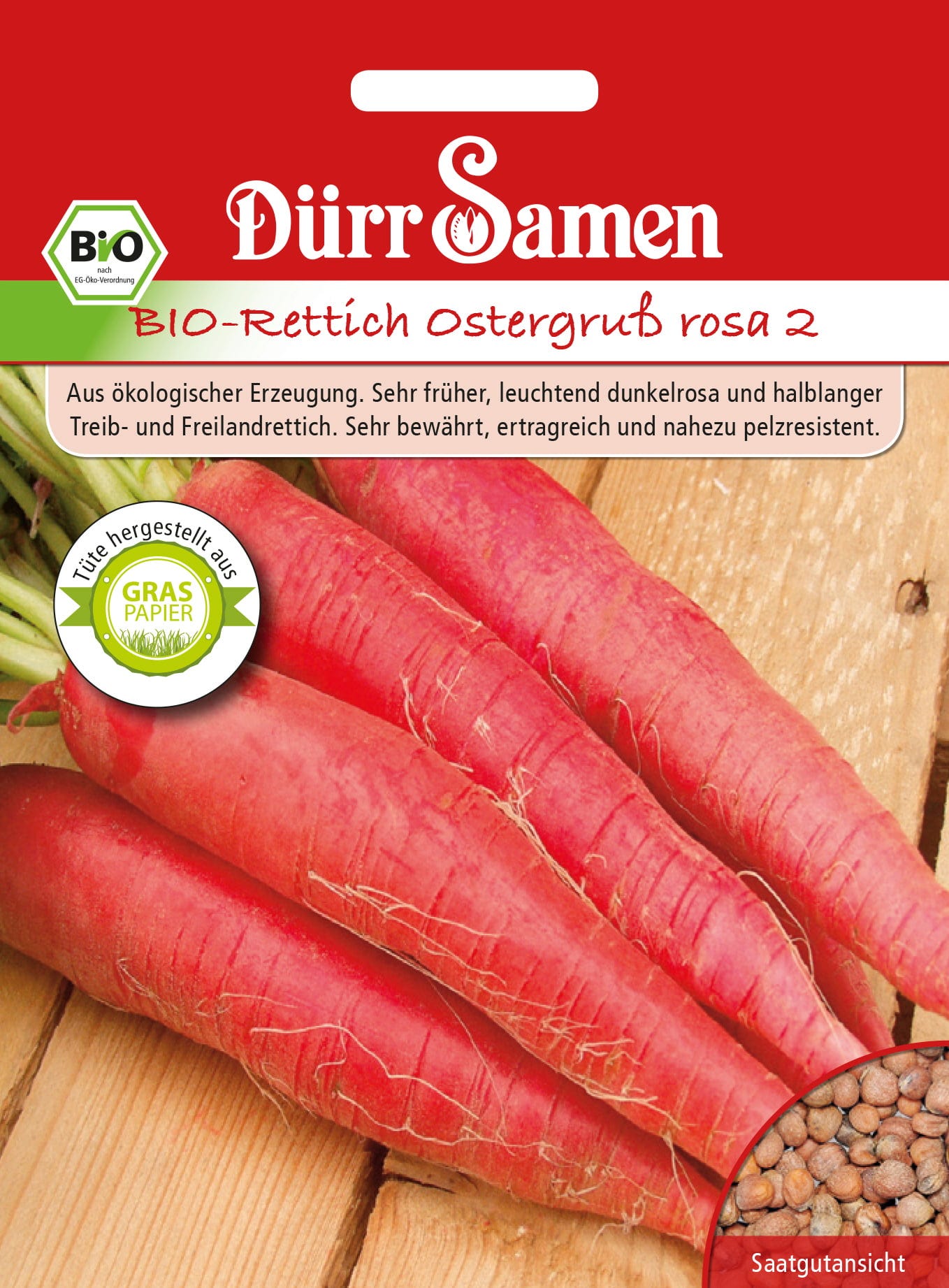 Denna mycket tidiga, skördesäkra och motståndskraftiga sort mot mjöldagg bildar halvlånga rättikor i en intensiv mörkrosa färg. De är mycket goda som råkost och i sallader. Detta är en beprövad och välkänd sort.