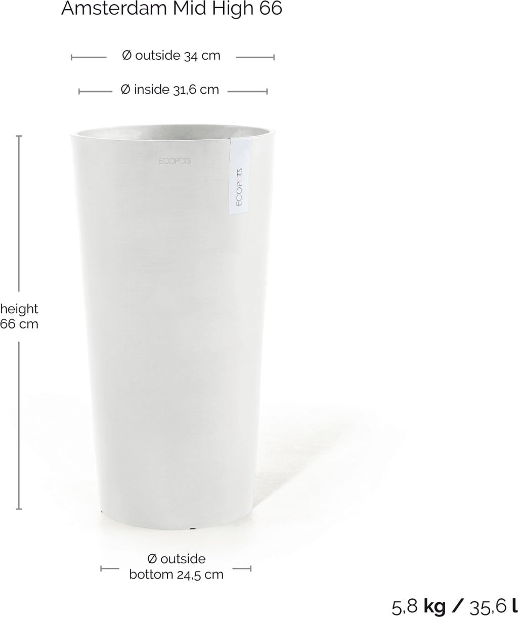 Ecopots Amsterdam Blomkruka Mid High 66, Pure White