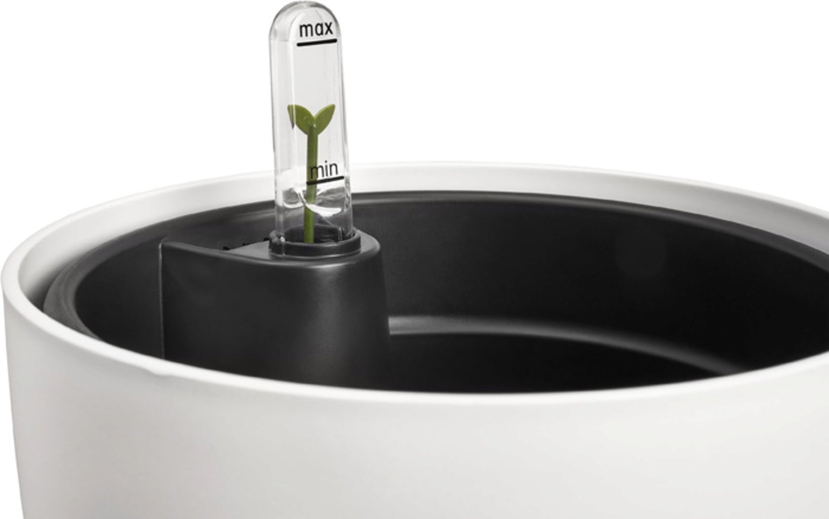 Den här krukan i återvunnen plast imponerar med sin tidlösa och stilrena design samt robusta kvalitet. Den passar in i de flesta inredningsstilar och lyfter fram dina krukväxter på ett elegant sätt. Extra praktiskt: Det integrerade självbevattningssystemet förser dina växter med vatten och gör daglig vattning överflödig.