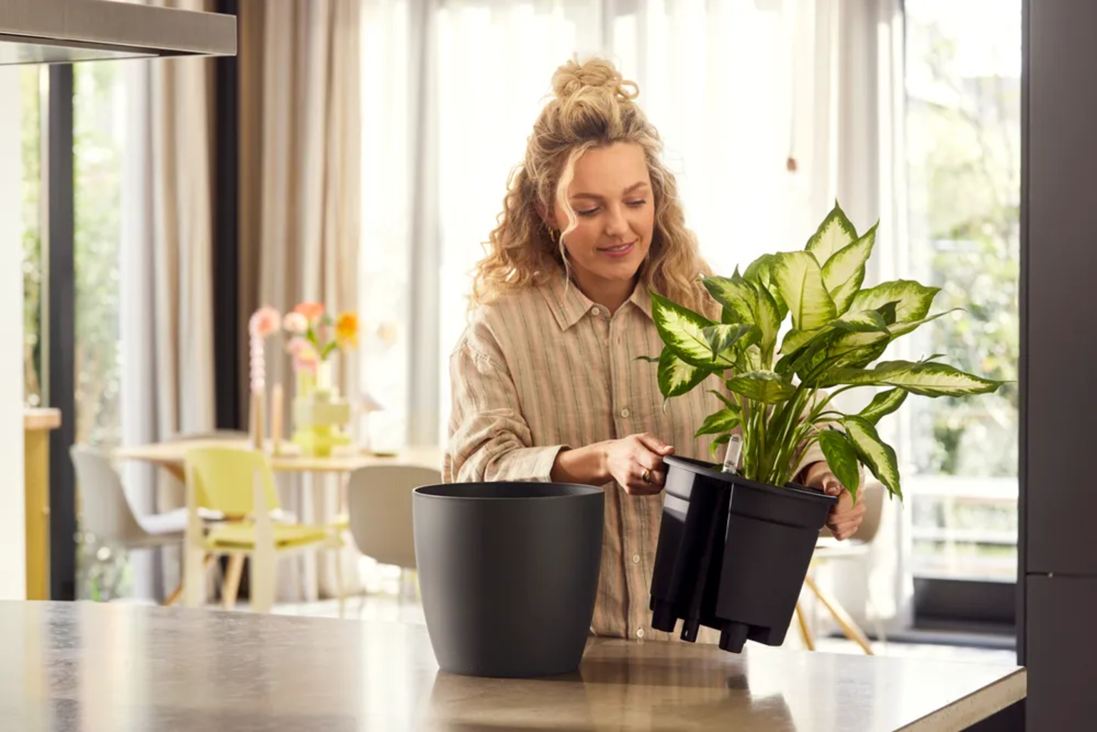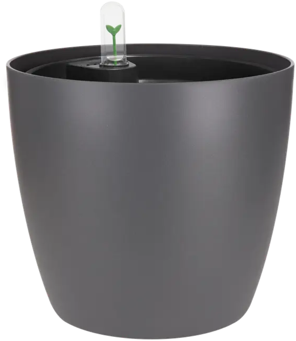 Den här krukan i återvunnen plast imponerar med sin tidlösa och stilrena design samt robusta kvalitet. Den passar in i de flesta inredningsstilar och lyfter fram dina krukväxter på ett elegant sätt. Extra praktiskt: Det integrerade självbevattningssystemet förser dina växter med vatten och gör daglig vattning överflödig.