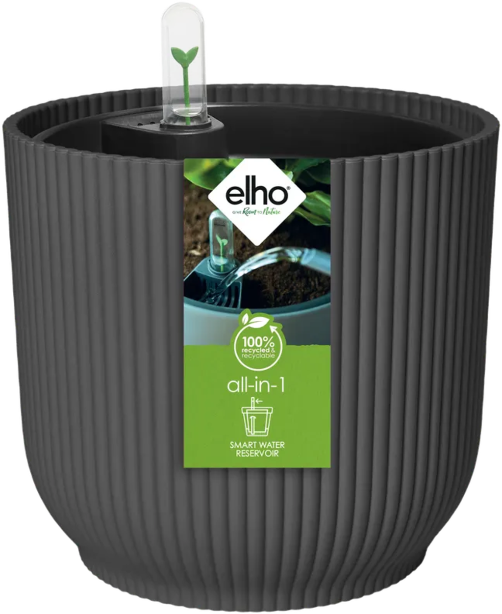 elho All-In-1 Set Kruka Vibes Rund 25 cm inkl. Bevattningssystem, Antracit