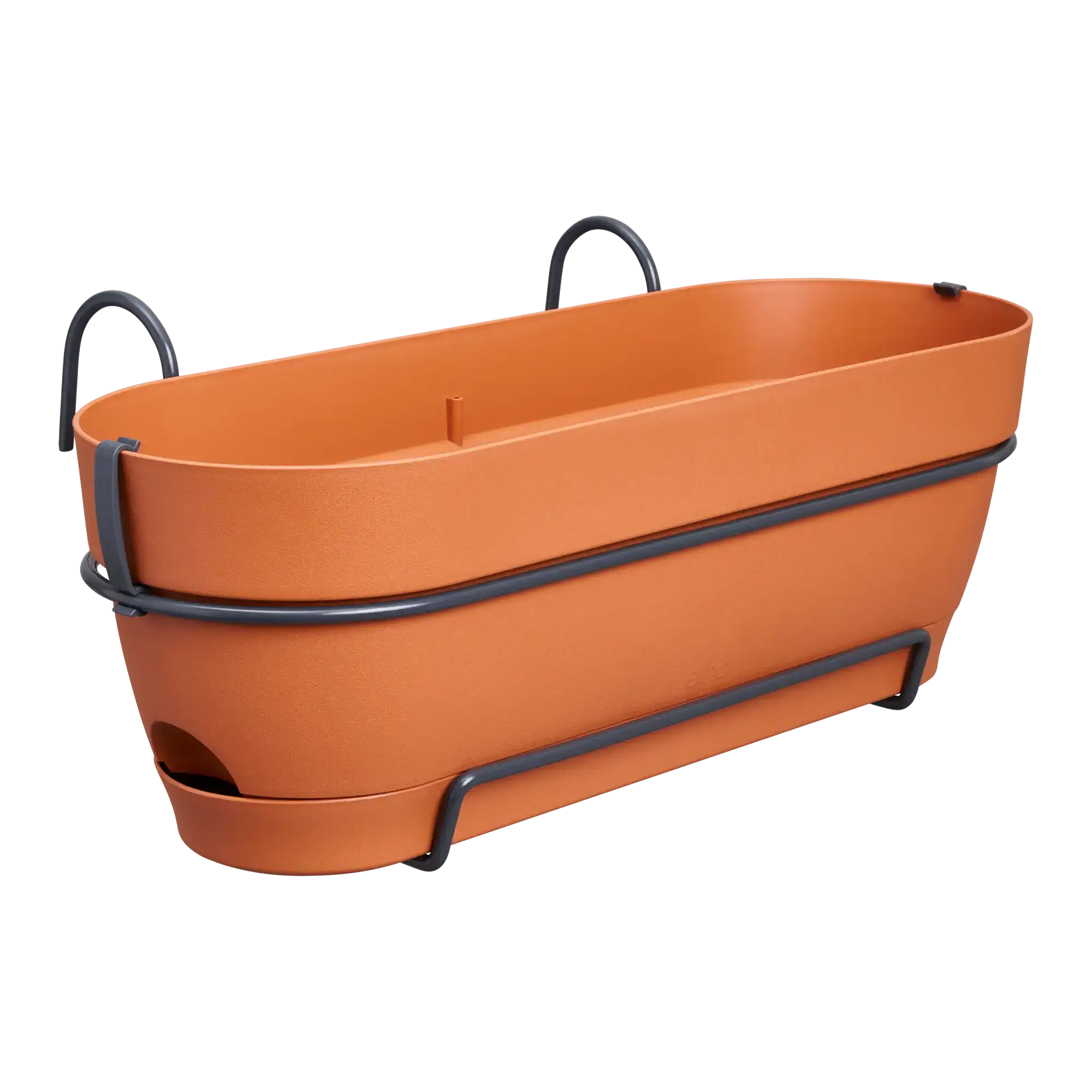Med denna hållbart tillverkade balkonglåda i trendiga färger kan du lägga till grönska till balkongräcken, staket och fönsterbrädor på ett modernt sätt och förvandla ditt hem till en grön oas. Vare sig det är individuellt eller i kombination med andra planteringskärl från vibia-serien , denna balkonglåda är alltid ett fantastiskt blickfång som alltid förser dina växter med tillräckligt med vatten tack vare den integrerade vattenreservoaren.