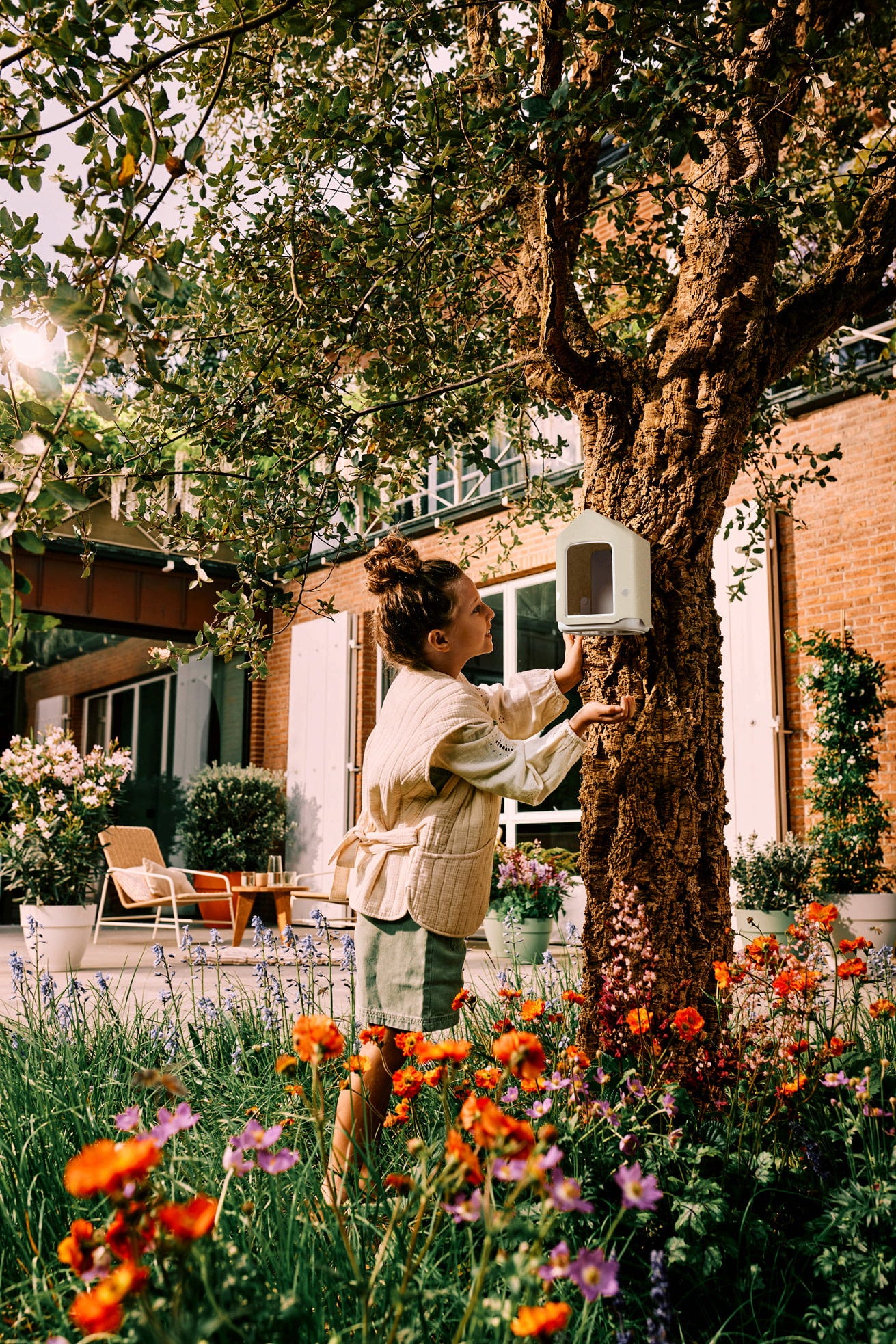 Detta stilrena fågelmatshus i återvunnen plast har tagits fram tillsammans med experter och smälter med sina naturliga färger fint in i vackert utformade trädgårdar, terrasser och balkonger. Med en skyddad zon för fågelbad och matplats skapar du en trygg och trivsam plats för dina bevingade besökare.