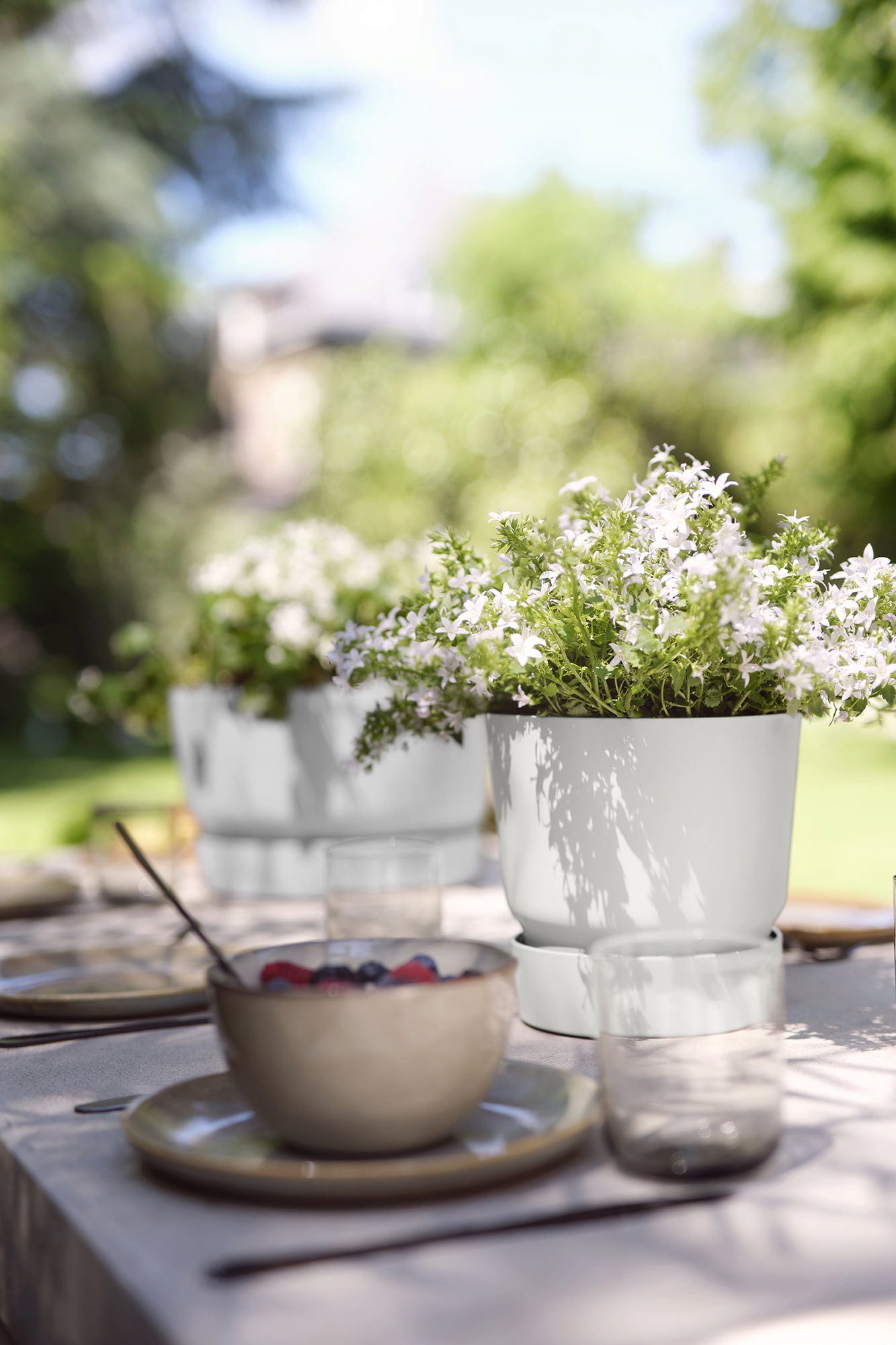 Greenville växtkrukan imponerar med sin stilfulla, eleganta design och smarta konstruktion. Tack vare den integrerade vattenbehållaren tillförs dina plantor jämnt vatten, vilket stödjer deras kraftiga tillväxt optimalt. Även om du glömmer att vattna kommer dina växter fortfarande att skyddas från att torka ut.