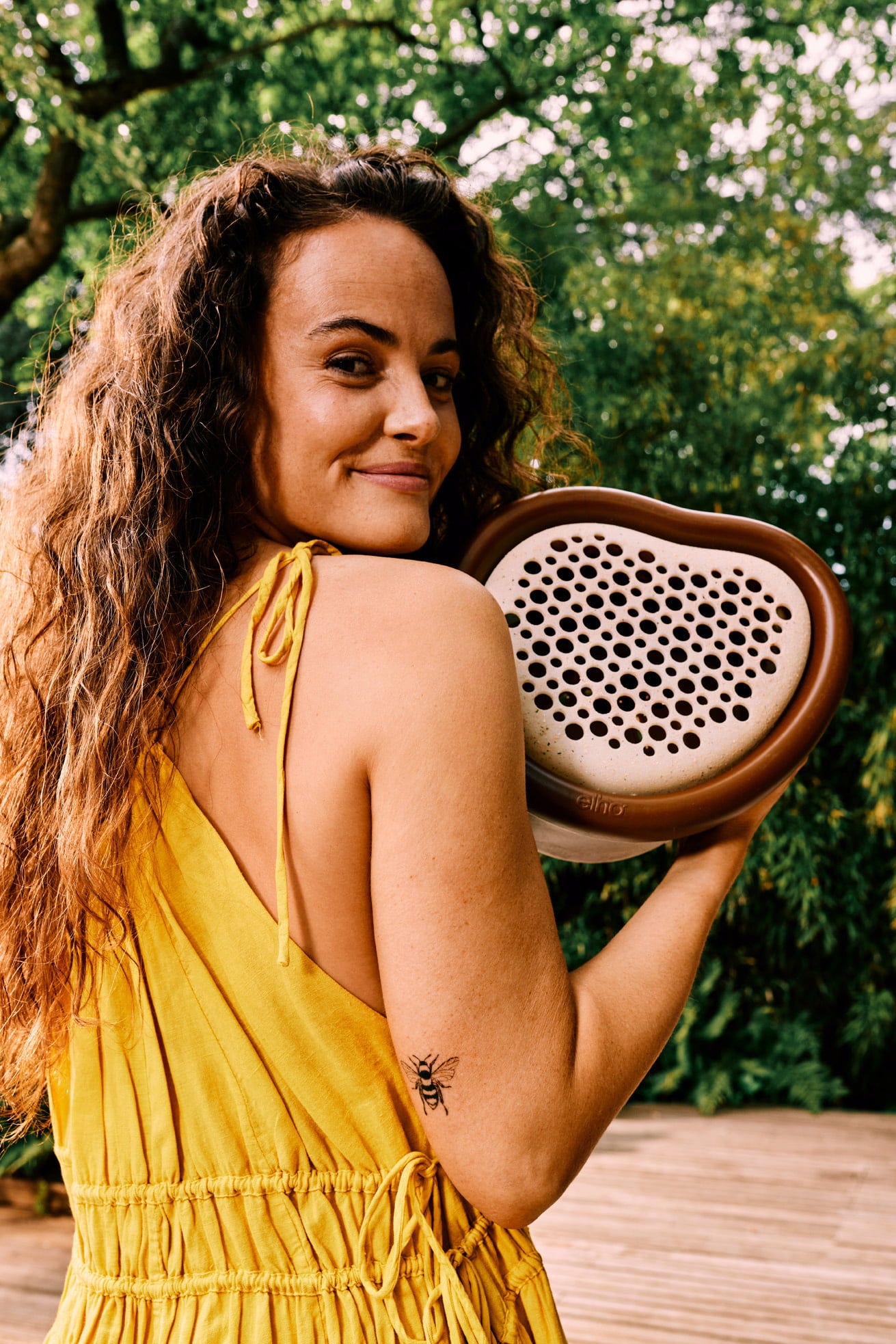 Med detta vackert formade bihotell kan du erbjuda flitiga bin ett tryggt hem och samtidigt locka dessa viktiga nyttodjur till din trädgård. Det har utvecklats i samarbete med experter och imponerar med sin smarta, multifunktionella design och sin organiska form. Ett riktigt lyft för din trädgård och ett fungerande ekosystem!