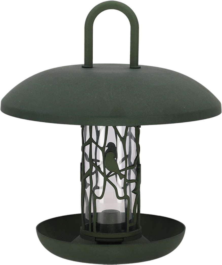 Denna återvunna fodersilo med skål garanterar ren och bekväm utfodring för dina trädgårdsfåglar. Tillverkad av återvunnen plast, robust och hållbar - till glädje för både människor och djur.