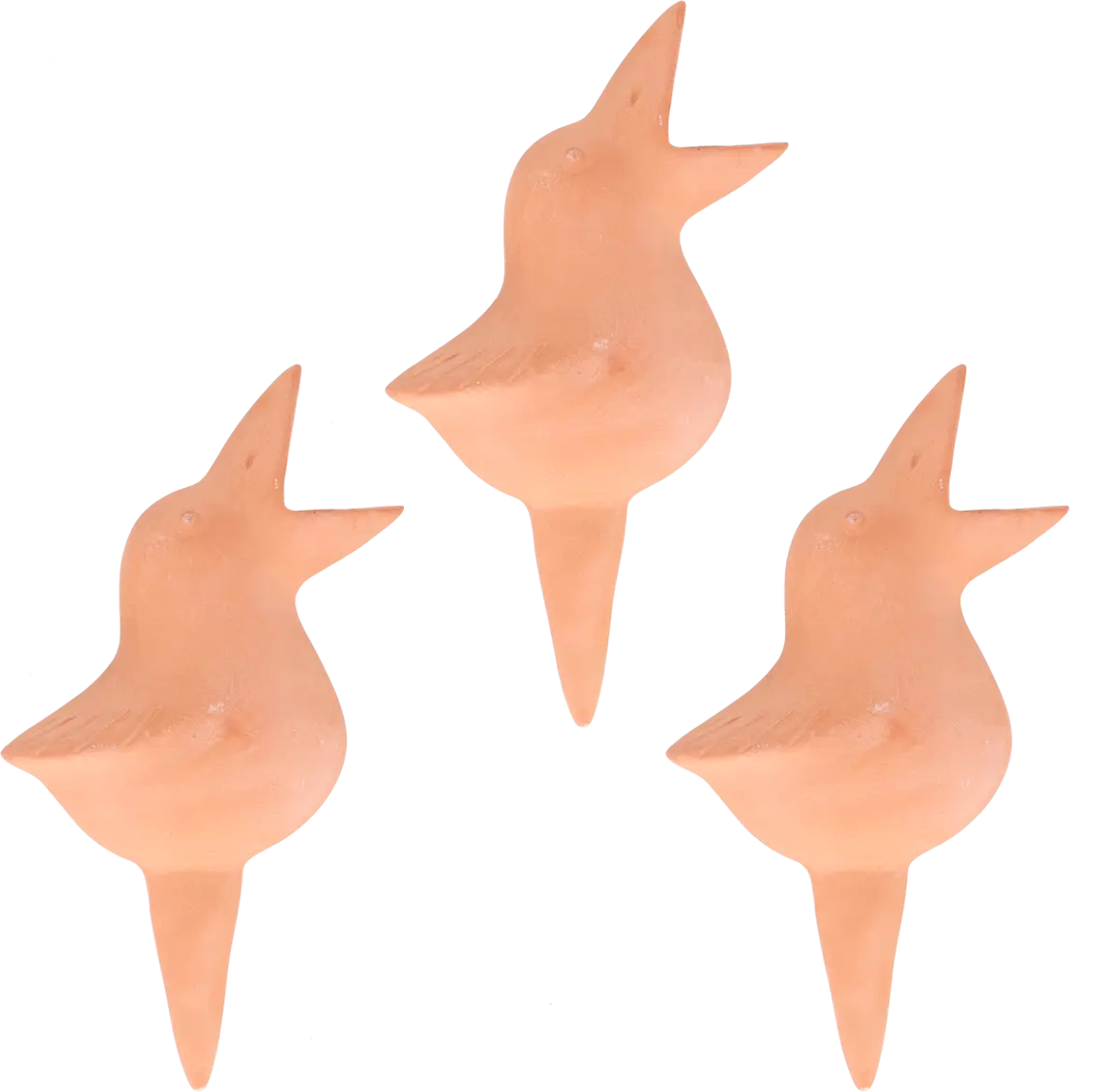 Dessa tre små fåglar är inte bara söta att se på, de hjälper också till med bevattningen av dina krukväxter. Stick ner dem i jorden och fyll vatten i deras öppna näbbar. Eftersom de är tillverkade av porös terrakotta lagrar de vatten och avger det gradvis till dina växter, så att du inte behöver vattna lika ofta.