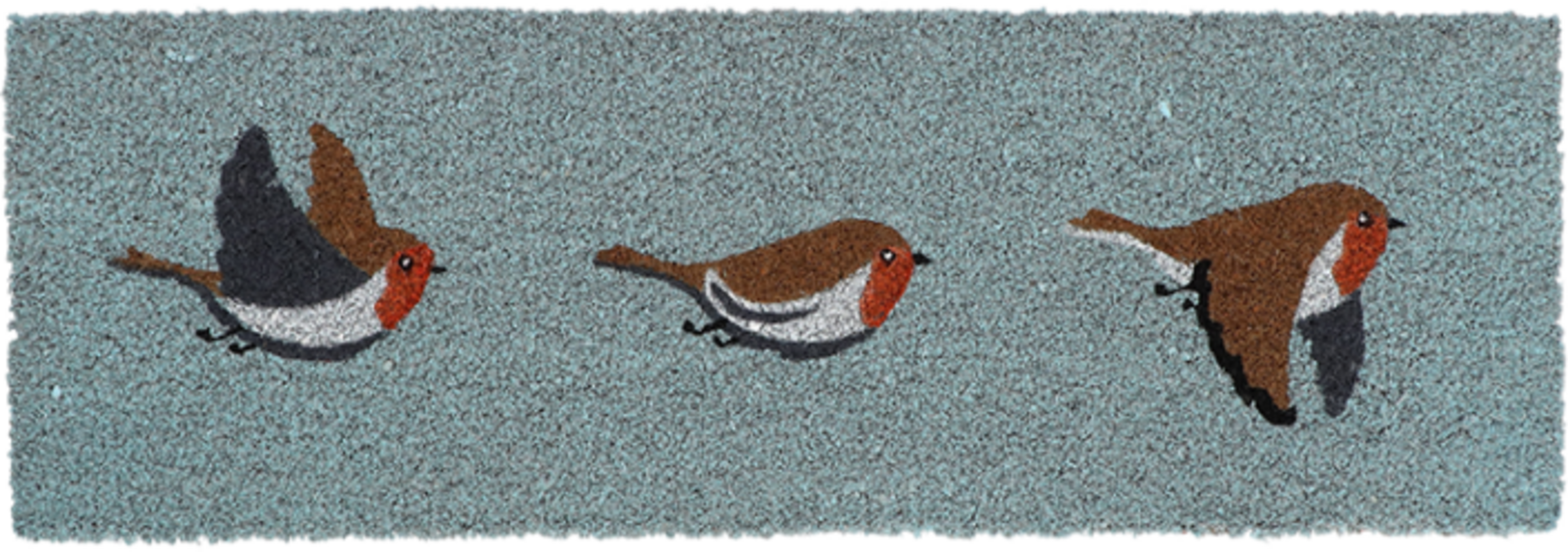 Välkomna dina gäster med ett charmigt blickfång! Denna dörrmatta i kokos med ett glatt rödhake-motiv kombinerar naturlighet och funktionalitet. Den håller smuts borta, är tålig och ger ett gott humör direkt till din ytterdörr.