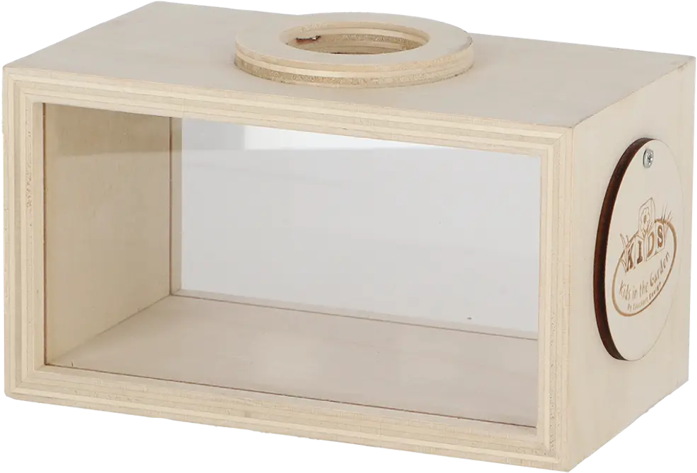 Denna låda är perfekt för att observera och studera insekter på nära håll utan att skada dem. Två förstoringsglas med tre- respektive femfaldig förstoring gör det möjligt att se även små detaljer och ger en fascinerande inblick i insekternas värld.