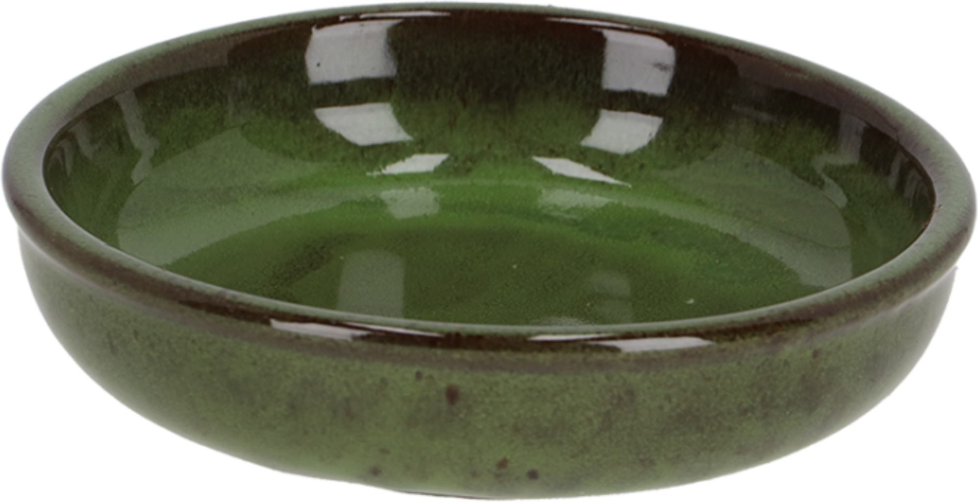 Detta fat i terrakotta är ett perfekt komplement till små växter och kokedamas. Den gröna färgen smälter harmoniskt in i omgivningen och skyddar ytor effektivt mot fukt.