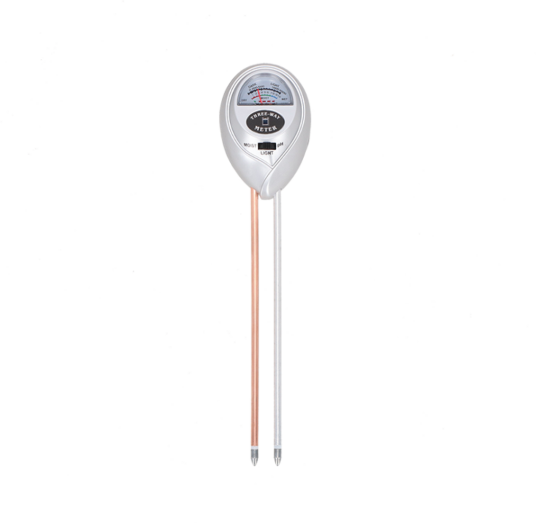 Detta kompakta 3-i-1-mätinstrument hjälper dig att ta hand om dina växter på bästa sätt. Det mäter tillförlitligt pH-värde, jordfuktighet och ljusnivå, så att du vet exakt när det är dags att vattna, gödsla eller flytta växten. För friska plantor och bästa möjliga skörd.