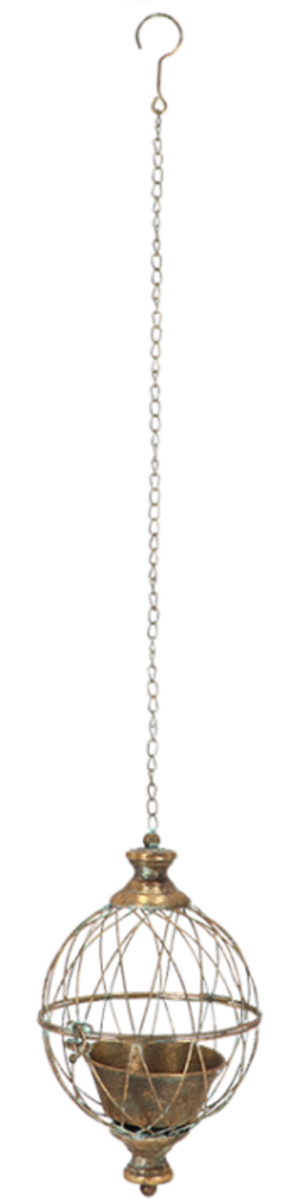 Denna sfäriska planteringskärl imponerar med sin åldrade metall i en mjuk guldton med en sofistikerad kopparlook. Den är idealisk för hängande växter och ger en elegant accent till balkonger, uteplatser eller interiörer. Planteringskärlet är lämpligt för inomhus- och utomhusbruk och levereras med en robust kedja för enkel upphängning.