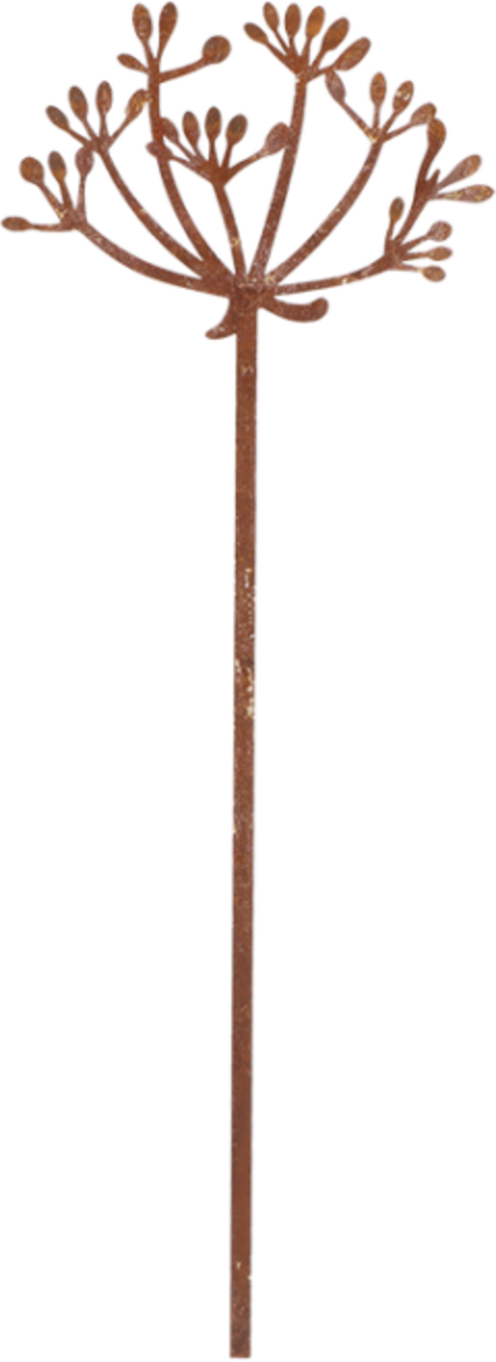 Denna detaljrika trädgårdsdekoration förmedlar rustik skönhet i rabatter och krukor. Den rostiga ytan utvecklar med tiden en naturlig patina som ger ängskärvans motiv ett extra levande och organiskt uttryck. En diskret men effektfull detalj i varje trädgård.