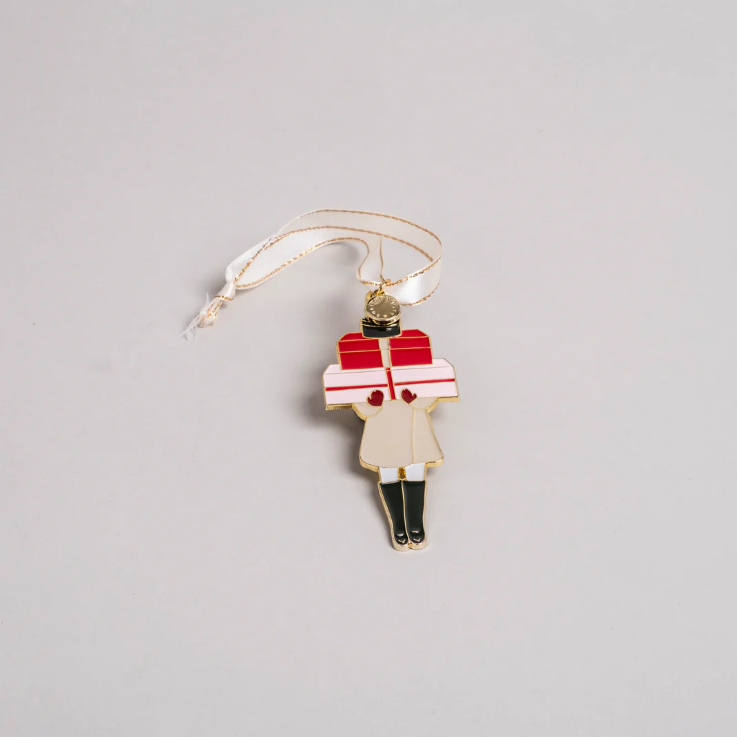 Juldekorationen "julflicka" för med sig glädje och mjuka färger till julgranen. Det kärleksfullt designade flickmotivet bär på gåvor och skapar ett stilfullt inslag med sina harmoniska toner av beige, rött, rosa och grönt. Söt och charmig – passar även perfekt som en liten presentdetalj som sprider stor glädje.