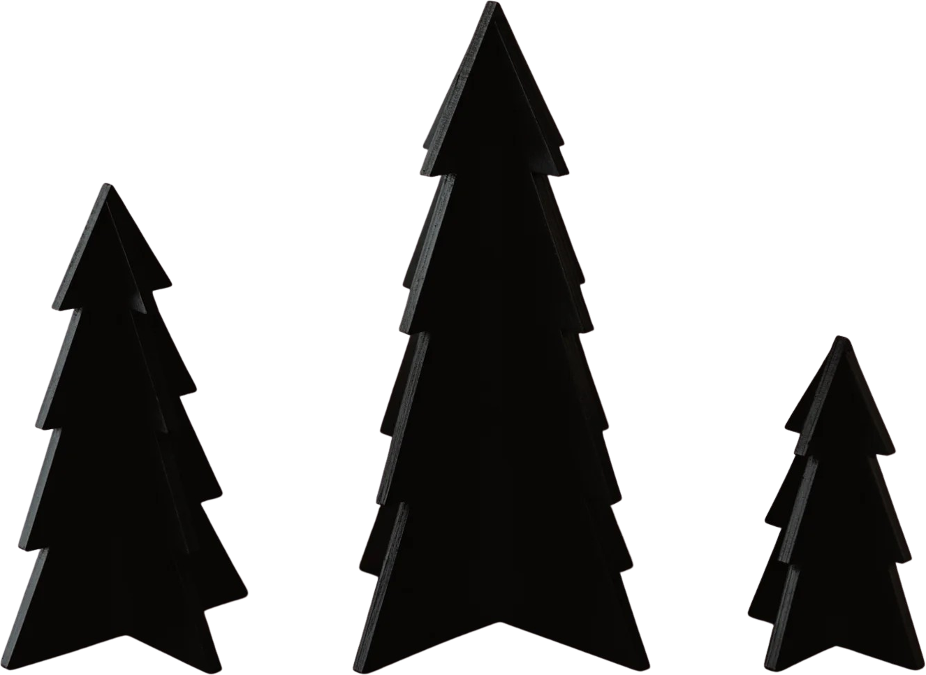 Ta in vintrig mysfaktor i hemmet! Det här 3-packet med granar i olika storlekar är enkelt att sätta ihop och kan dekoreras efter egen smak – stilrent, med ljusslinga eller tillsammans med kvistar och annat pynt.