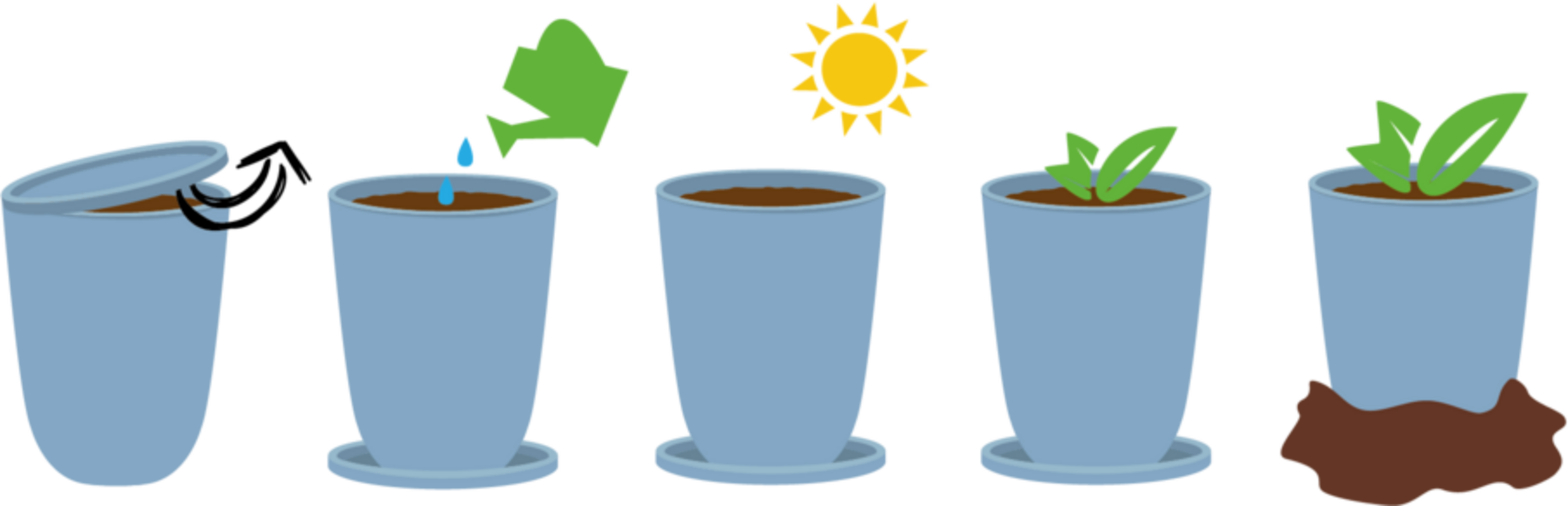 - Efter ca 6 månader, ta bort etiketten och plantera hela ecocanen i en kruka med jord. Burken bryts långsamt ned och blir till naturlig näring