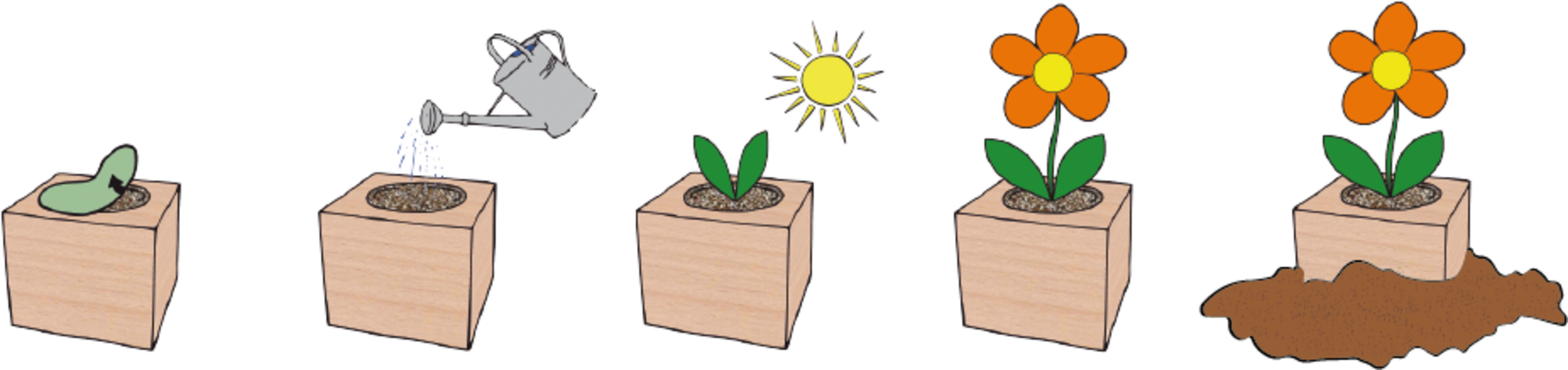 - Träkuben bryts då ned och omvandlas till naturlig växtnäring.