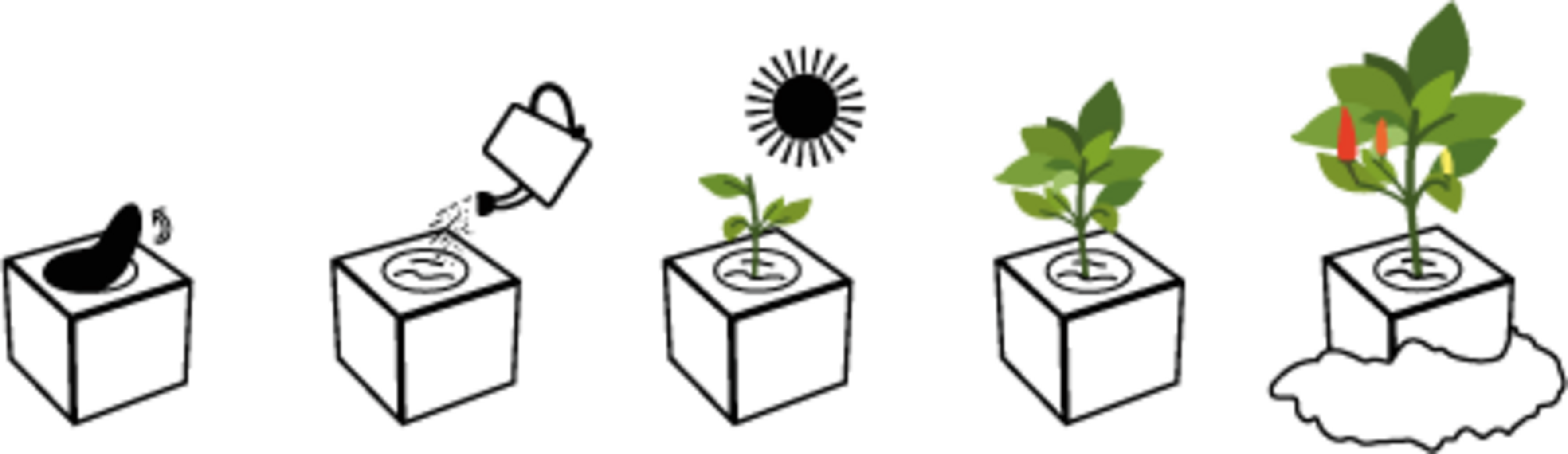 - När plantan blivit för stor (efter ca 6 månader) kan hela kuben planteras i en kruka.