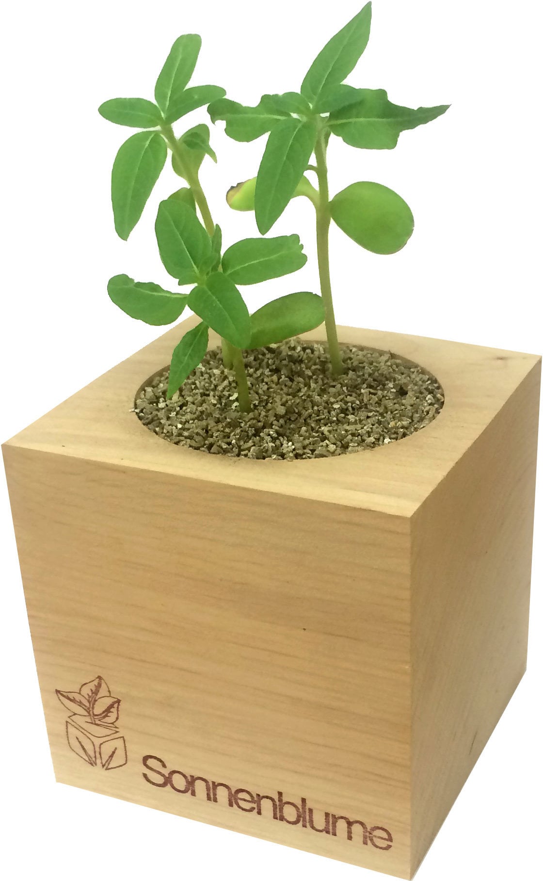 ecocube är en hållbar present i form av en vacker träkub tillverkad i Österrike. Den innehåller ett speciellt näringsgranulat och frön - redo att börja gro. Ta bara bort skyddsetiketten, tillsätt vatten och placera kuben på en ljus plats, inom kort visar sig de första gröna bladen.