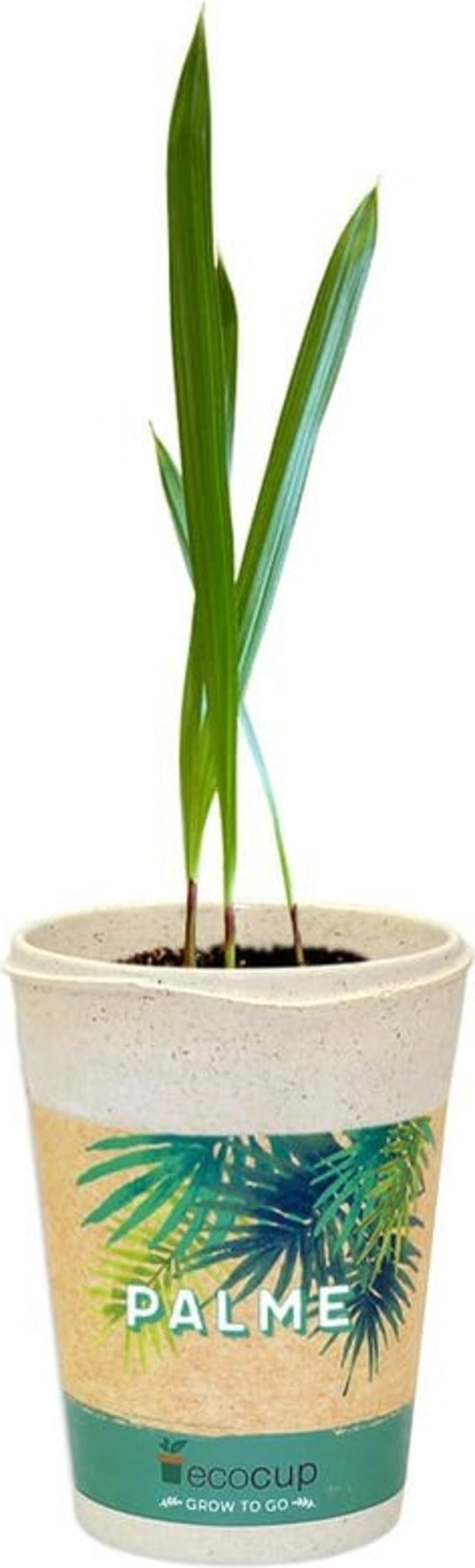 De miljövänliga ecocup-behållarna i kaffemuggsdesign tillverkas av pressade bambufibrer och risskal. De innehåller en naturlig näringsblandning och inblandade frön. Att odla växter i dessa charmiga och hållbara odlingsmuggar är ett nöje, och ett originellt sätt att ge bort lite grönska!
