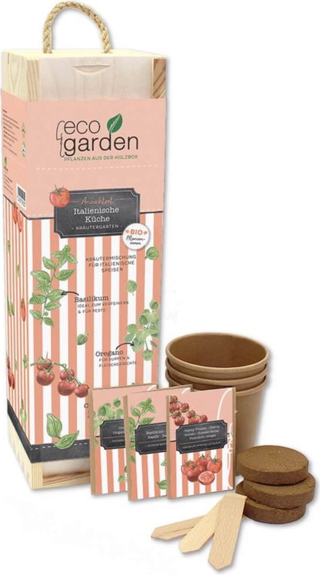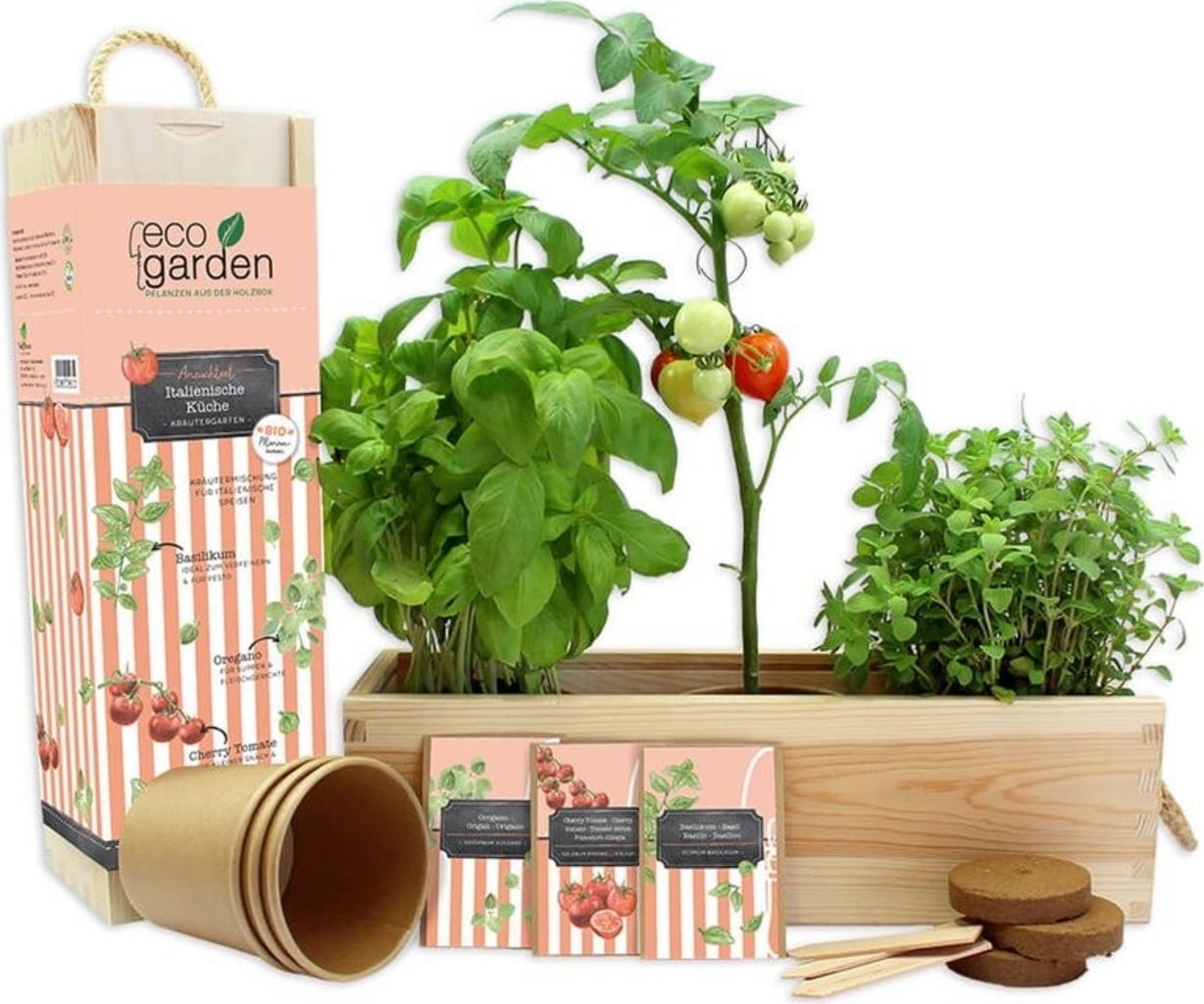 Om du älskar somriga maträtter är detta odlingsset ett måste. Det tar lite plats, är enkelt att använda och kommer i en dekorativ trälåda som dessutom passar perfekt som present.