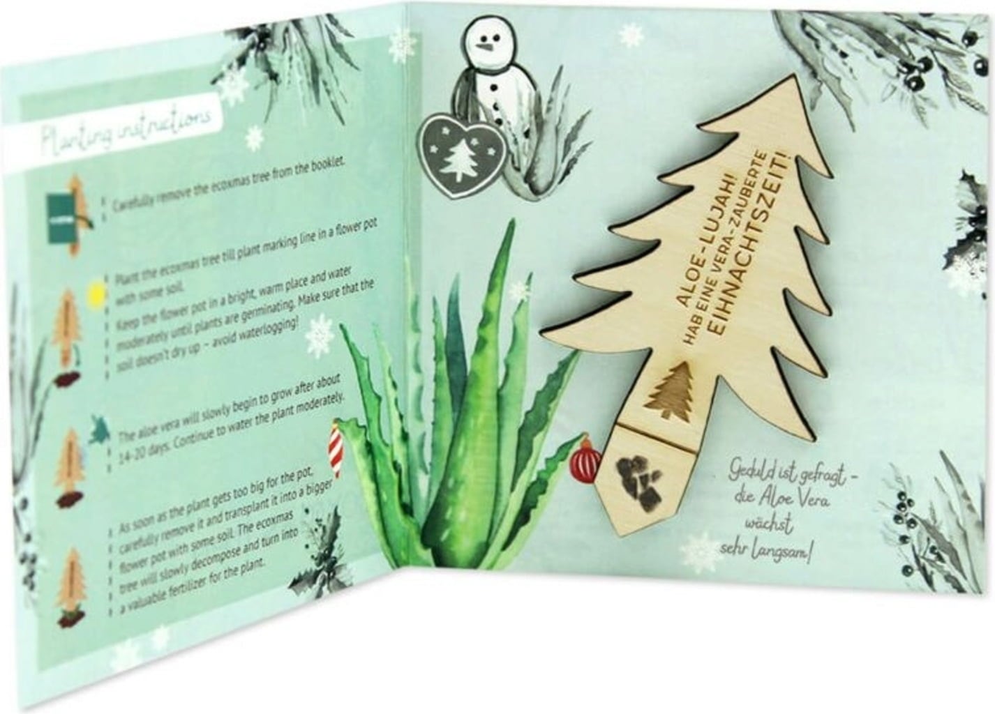 ecostick "ecoXmasTree" är en hållbar och charmig present - perfekt som julklapp eller som en liten omtänksam gest i juletid. Den lilla trägranen sticks direkt ner i jorden och förvandlas inom kort till en vacker Aloe Vera. En gåva som sprider glädje under många år.